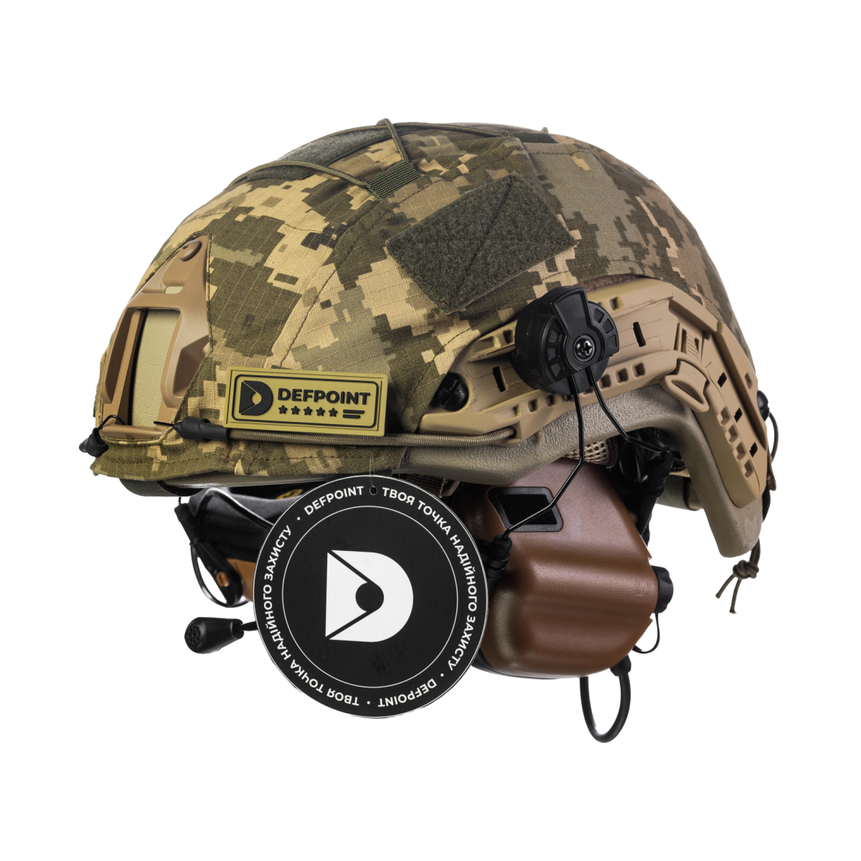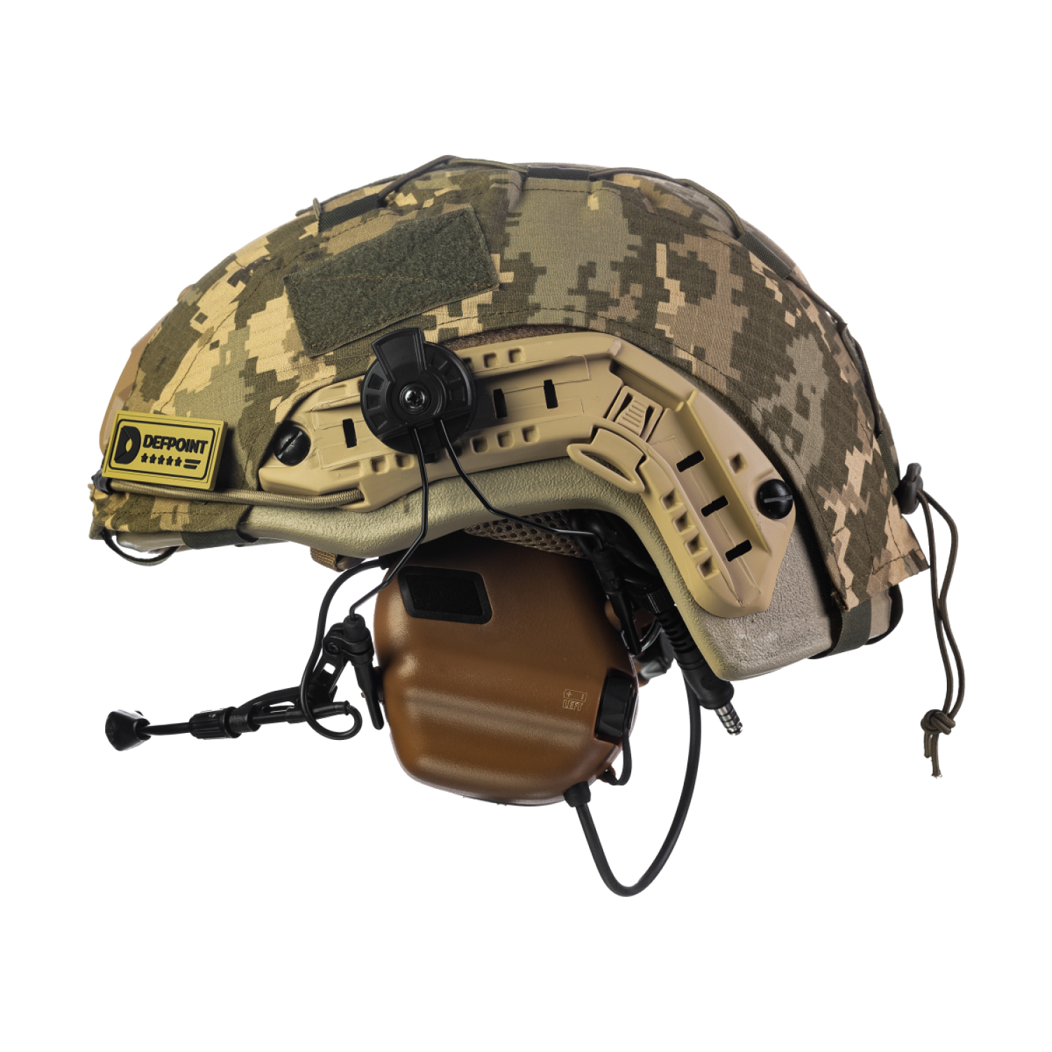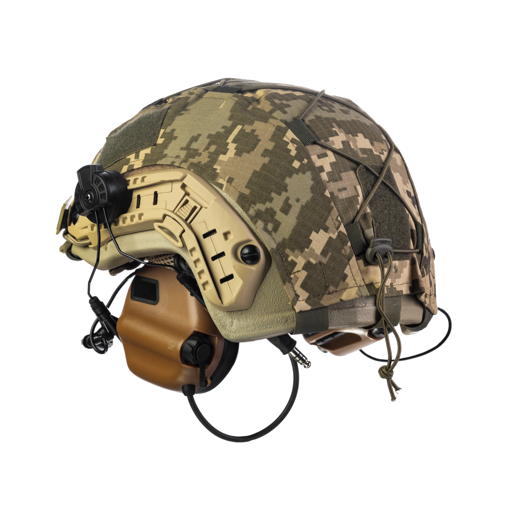 Комплект: шолом FAST NIJ IIIA + активні навушники M32H + кавер піксель. Колір: койот-піксель
