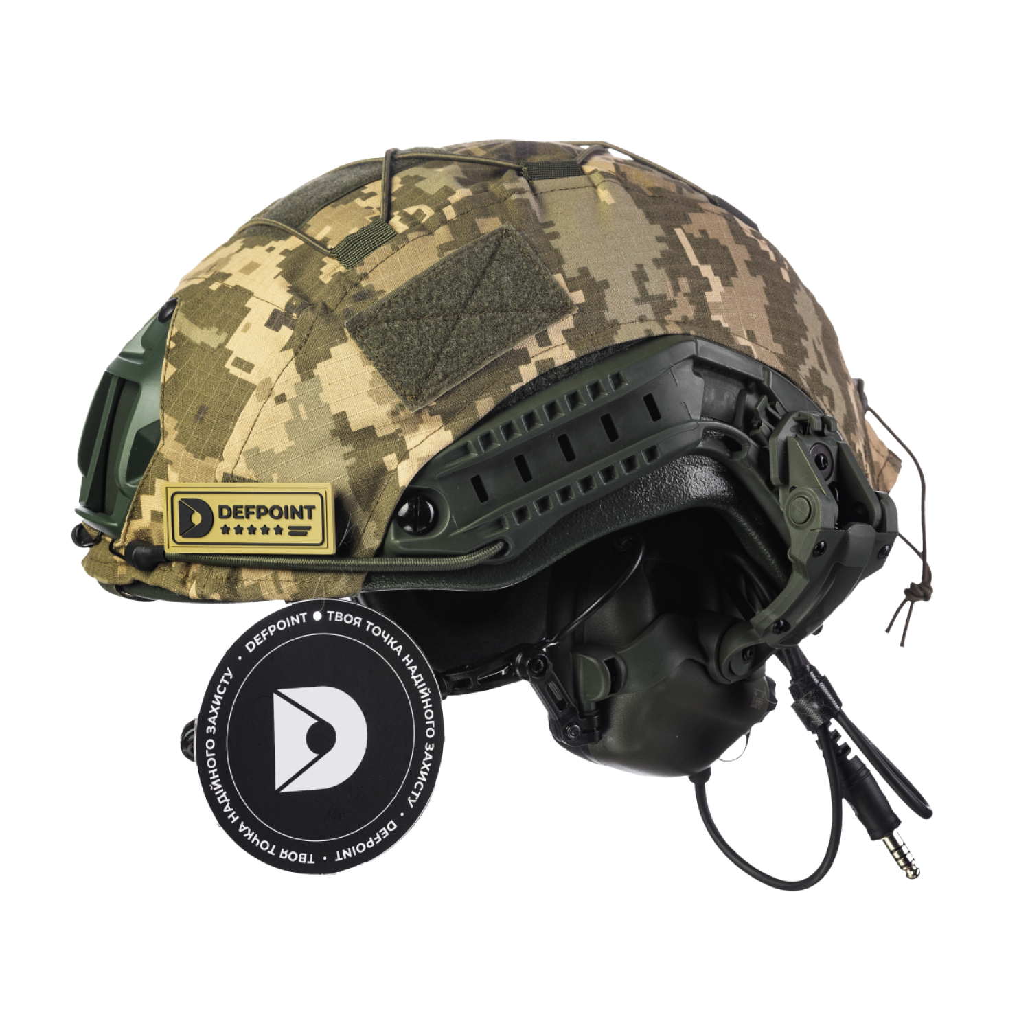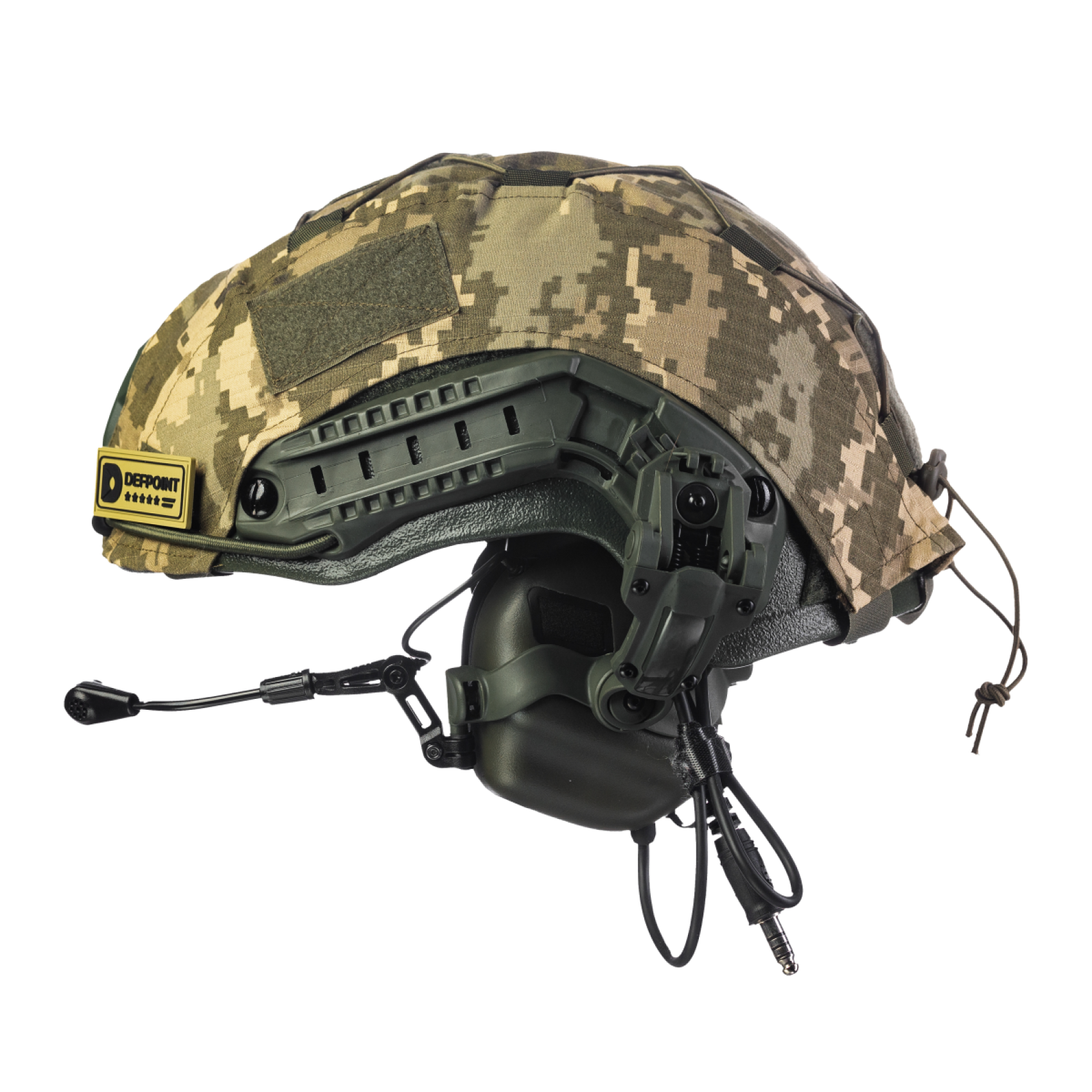 Комплект: шолом FAST NIJ IIIA + активні навушники M32H + кріплення чебурашки + кавер піксель. Колір: олива-піксель