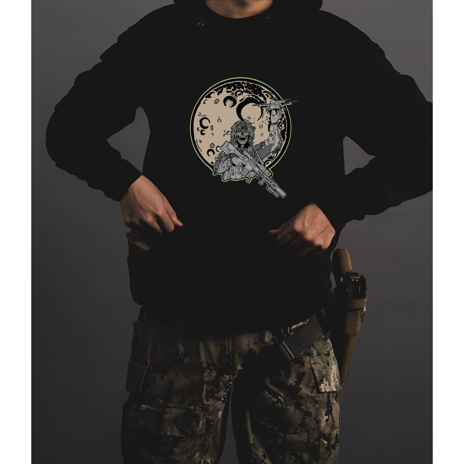 Худі оснащене стильним DTF принтом, який додає яскравості та індивідуальності. Для збереження принта рекомендуємо прати виріб навиворіт на делікатному режимі при температурі не вище 30 градусів та уникати агресивних мийних засобів.