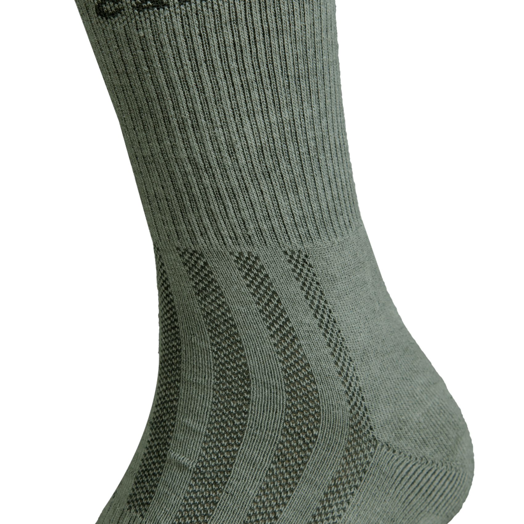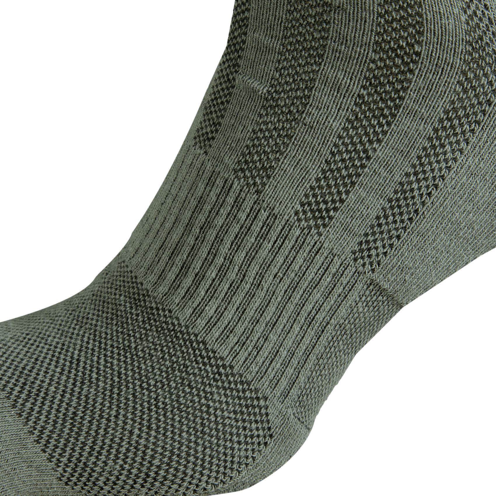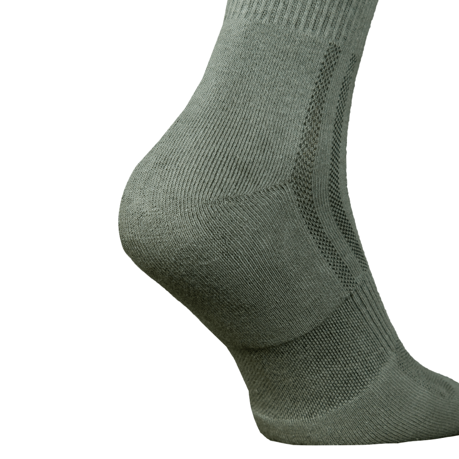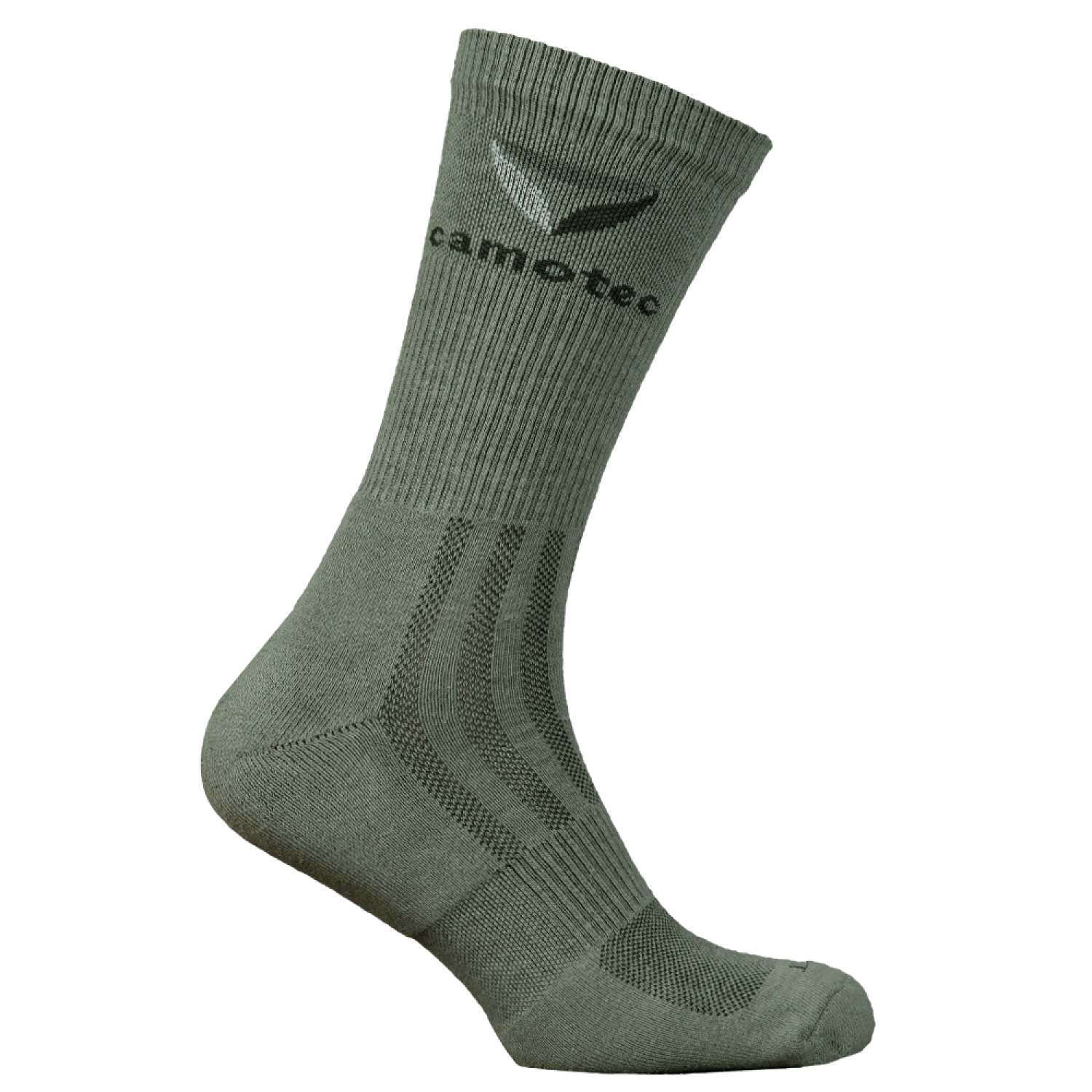 Трекінгові шкарпетки Camotec TRK Middle 3.0 Олива, виконані з високоякісної пряжі екстракласу, являють собою ідеальне поєднання комфорту, захисту і функціональності. Вони оснащені спеціальними демпферними ділянками, виконаними з використанням потовщеної махрової пряжі, а також активними термозонами, які забезпечують оптимальний комфорт і надійний захист для ніг під час інтенсивних трекінгових маршрутів і тривалих переходів у спеціалізованому взутті, особливо в умовах природи.