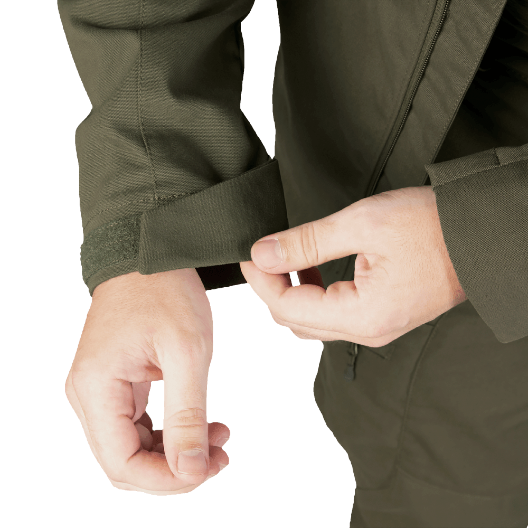 Костюм Camotec Stalker 3.0 Canvas Олива виготовлено з комбінації натуральних і синтетичних волокон, доповнених спандексом. Цей матеріал поєднує в собі зносостійкість, еластичність і гіпоалергенні властивості. Завдяки обробці Brush, тканина набуває приємної на дотик текстури, а просочення DWR забезпечує захист від вологи, пилу та бруду.