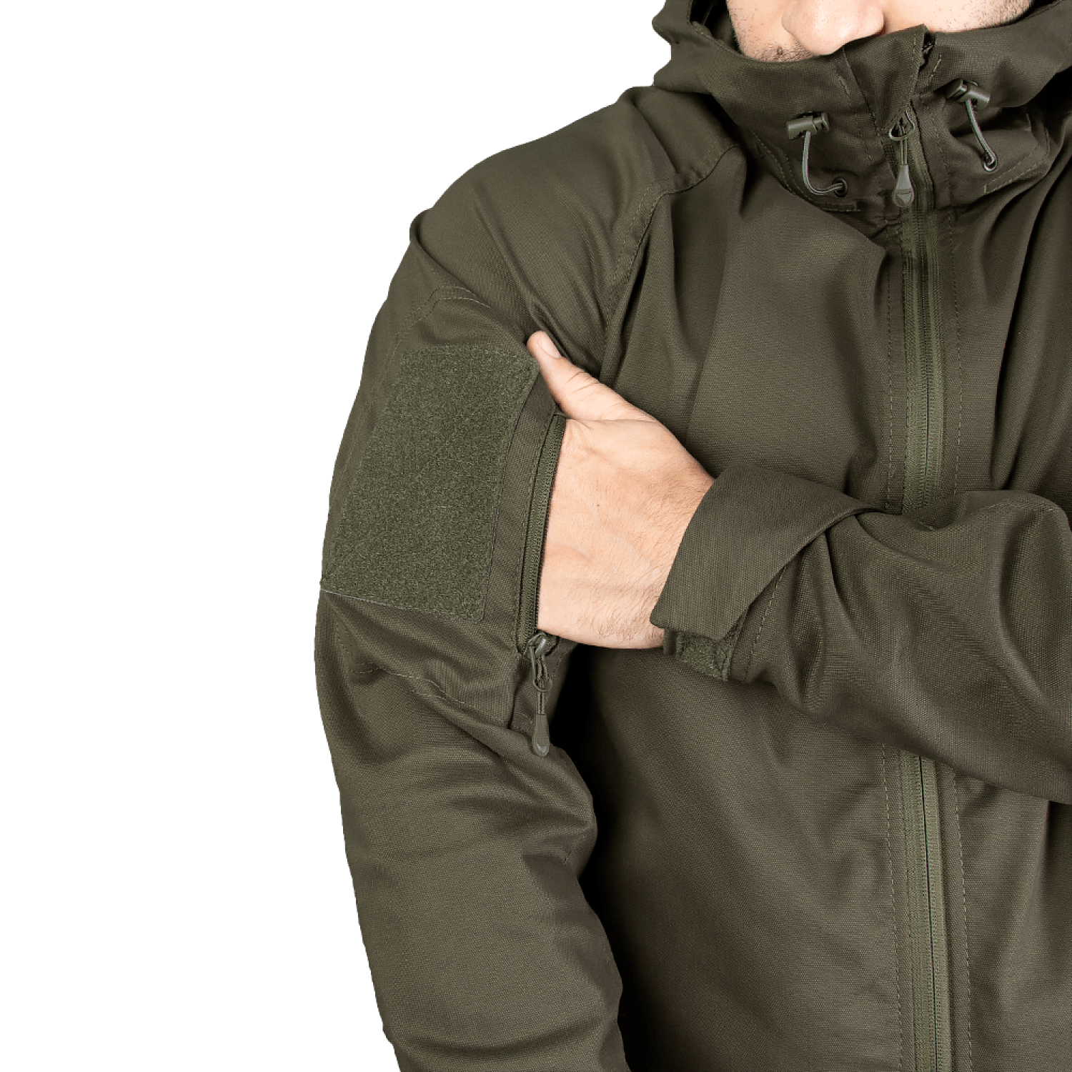 Куртка з капюшоном обладнана чотирма кишенями: двома спереду та двома під липучками для закріплення шевронів. Застібки на куртці забезпечені пулерами для зручного використання в рукавичках. Горловина куртки збільшена і захищена від замикання підборіддя. На поясі є регулятори для налаштування фіксації. Обсяг рукавів регулюється за допомогою спеціальних липучок на манжетах.