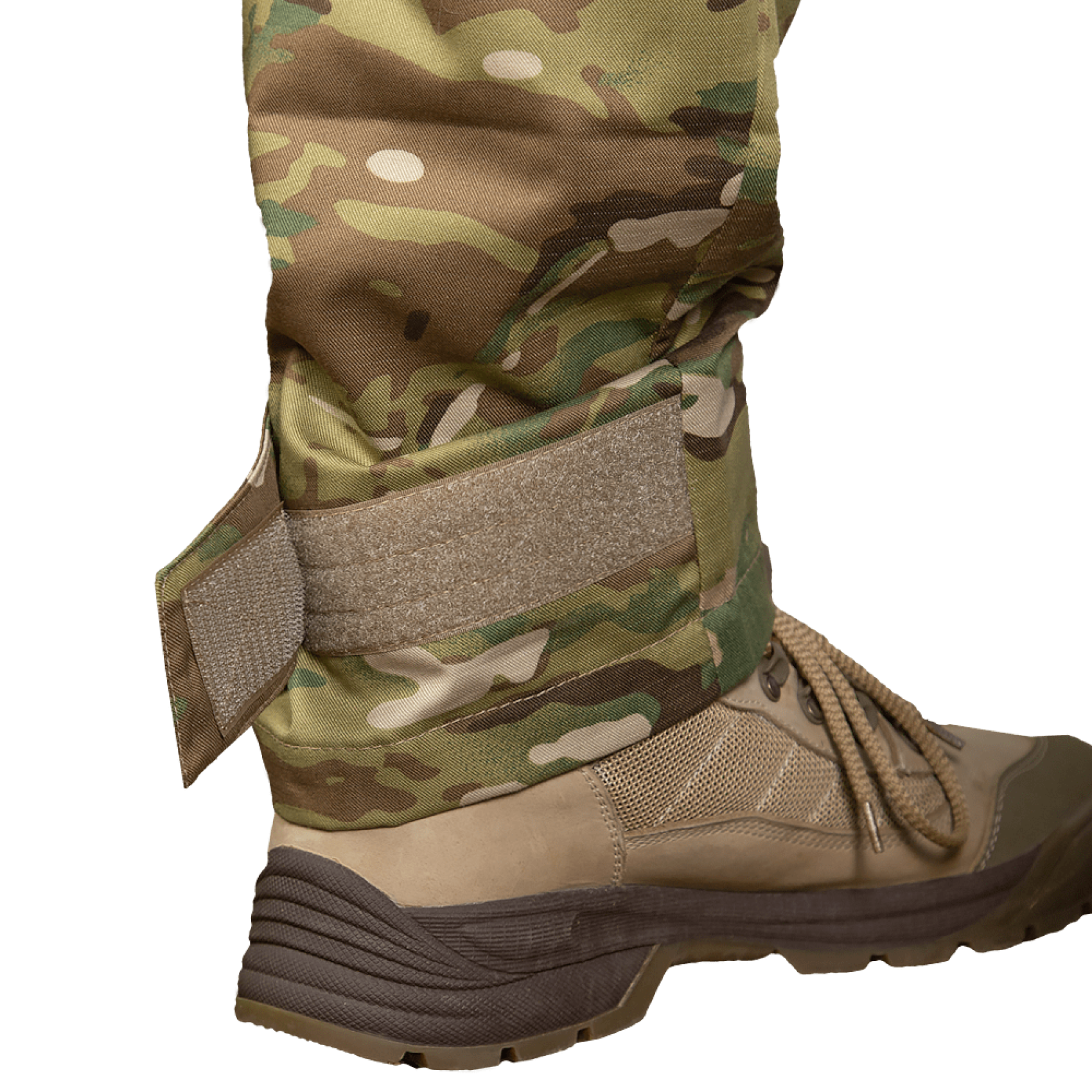 Штани з високим поясом і конструктивними виточками в ділянці колін і сідла забезпечують додаткову рухливість і зносостійкість. Вони оснащені двома кишенями спереду і двома місткими врізними кишенями з боків. Застібка-блискавка та липучки забезпечують надійну фіксацію.