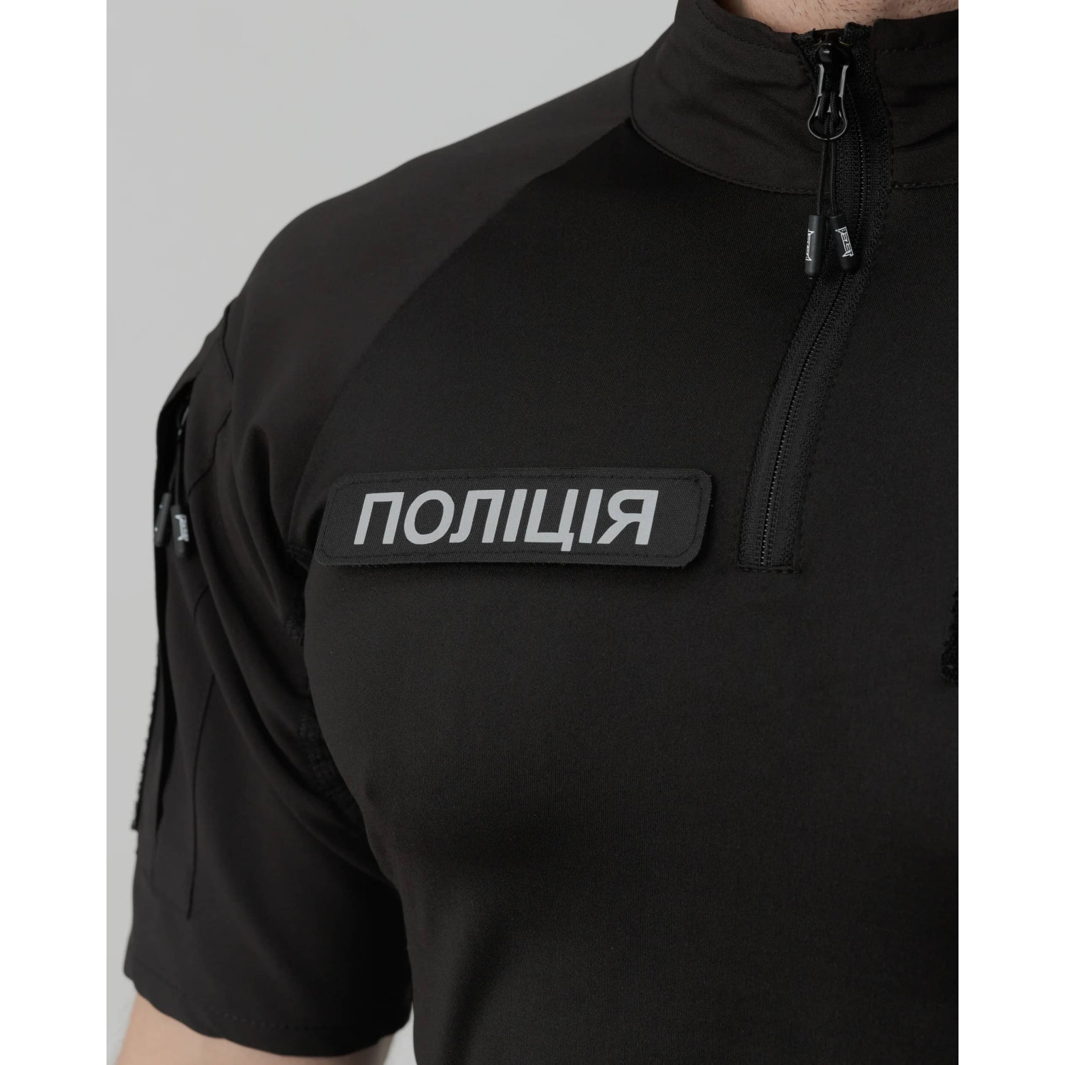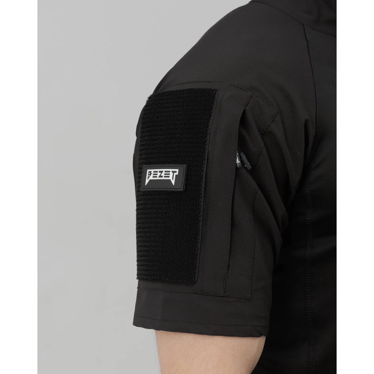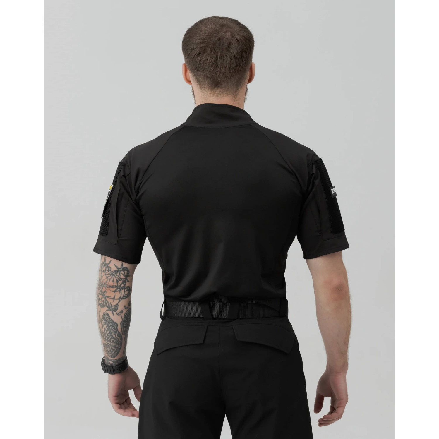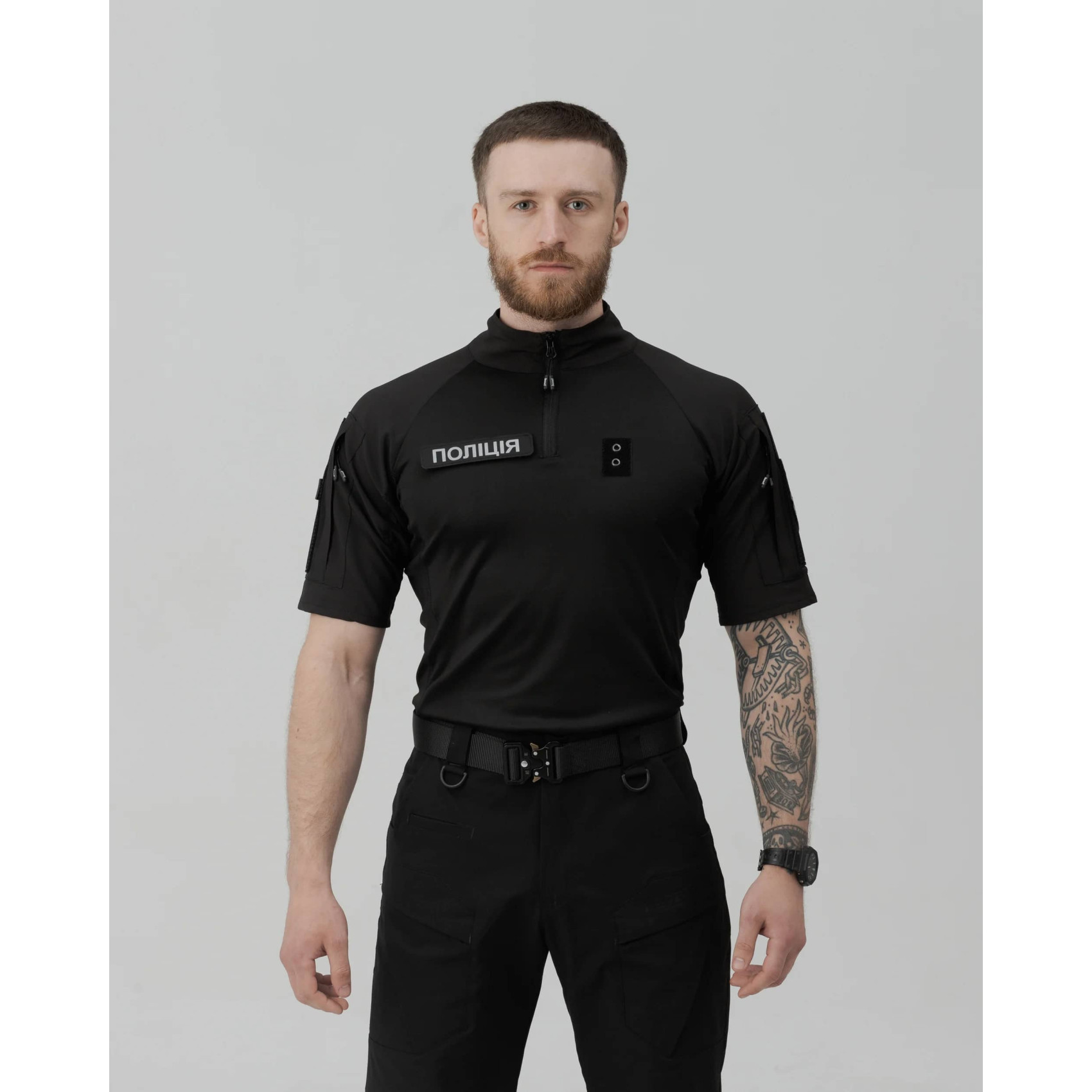 Футболка тактична BEZET Combat Чорний футболка прямого крою з коротким рукавом та високим коміром-стійкою. Основна частина виготовлена з лайкри, рукави та горловина - з плащової тканини Komfort. Особливістю лайкри є те, що вона швидко сохне, легко витирається, має антибактеріальні властивості, легка та приємна до тіла.