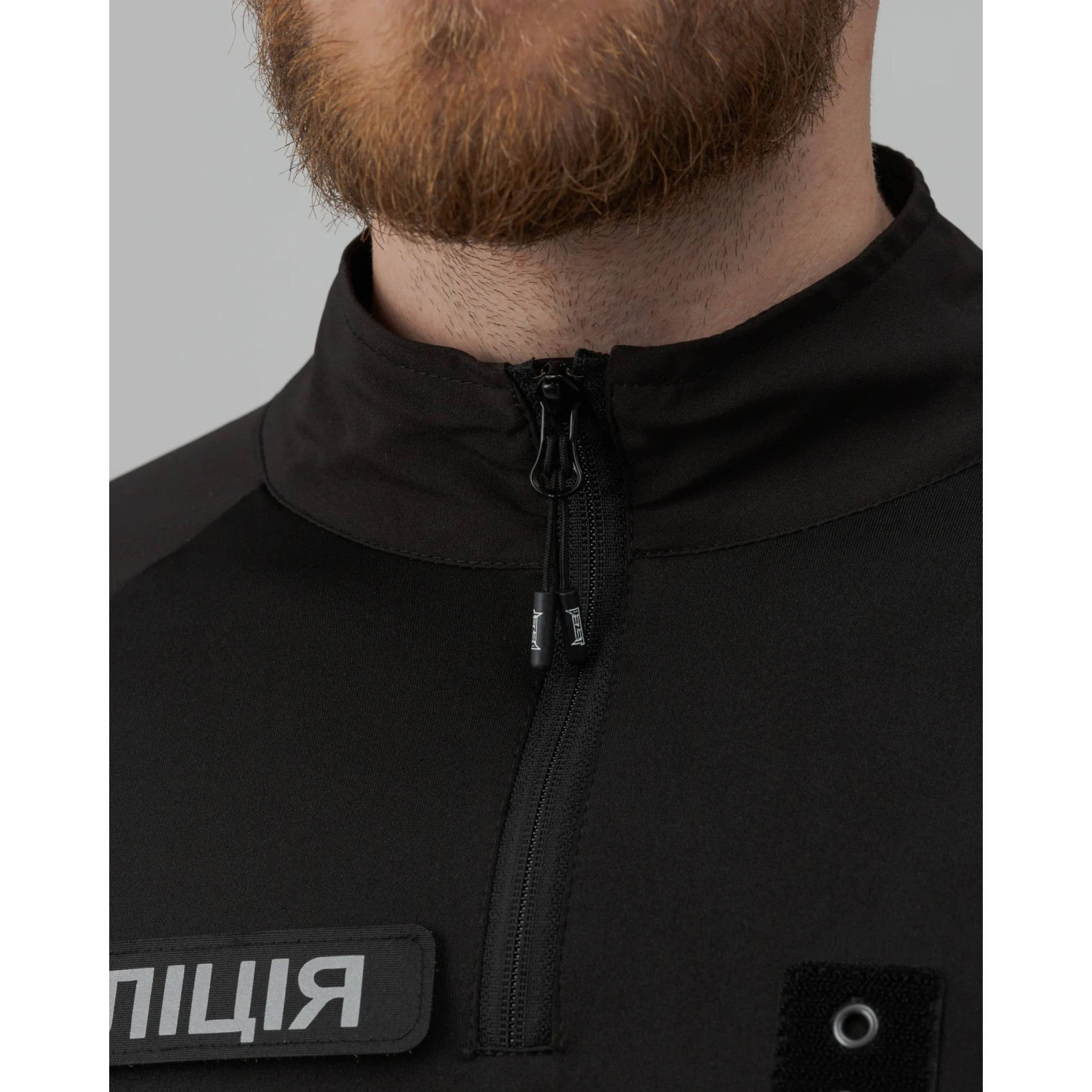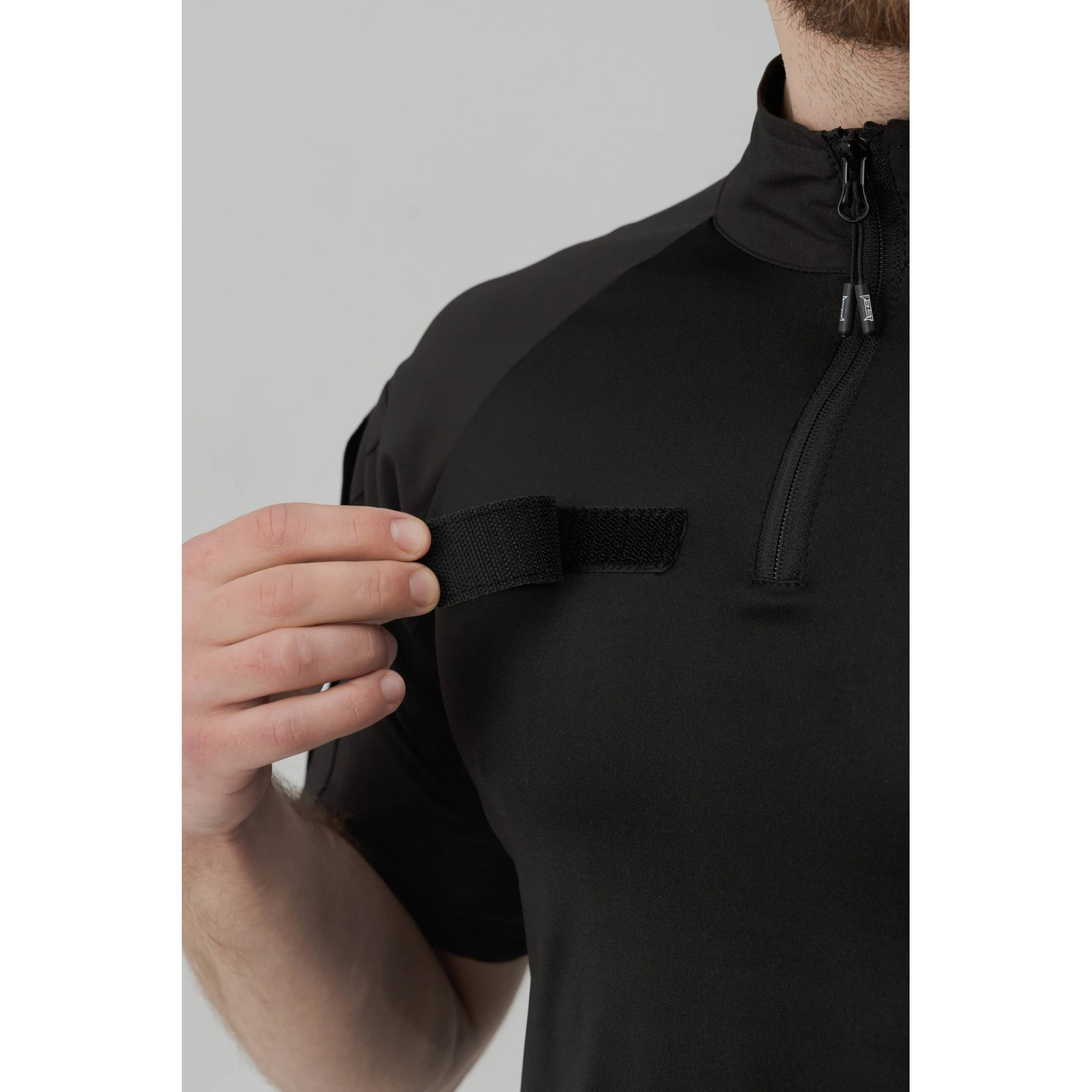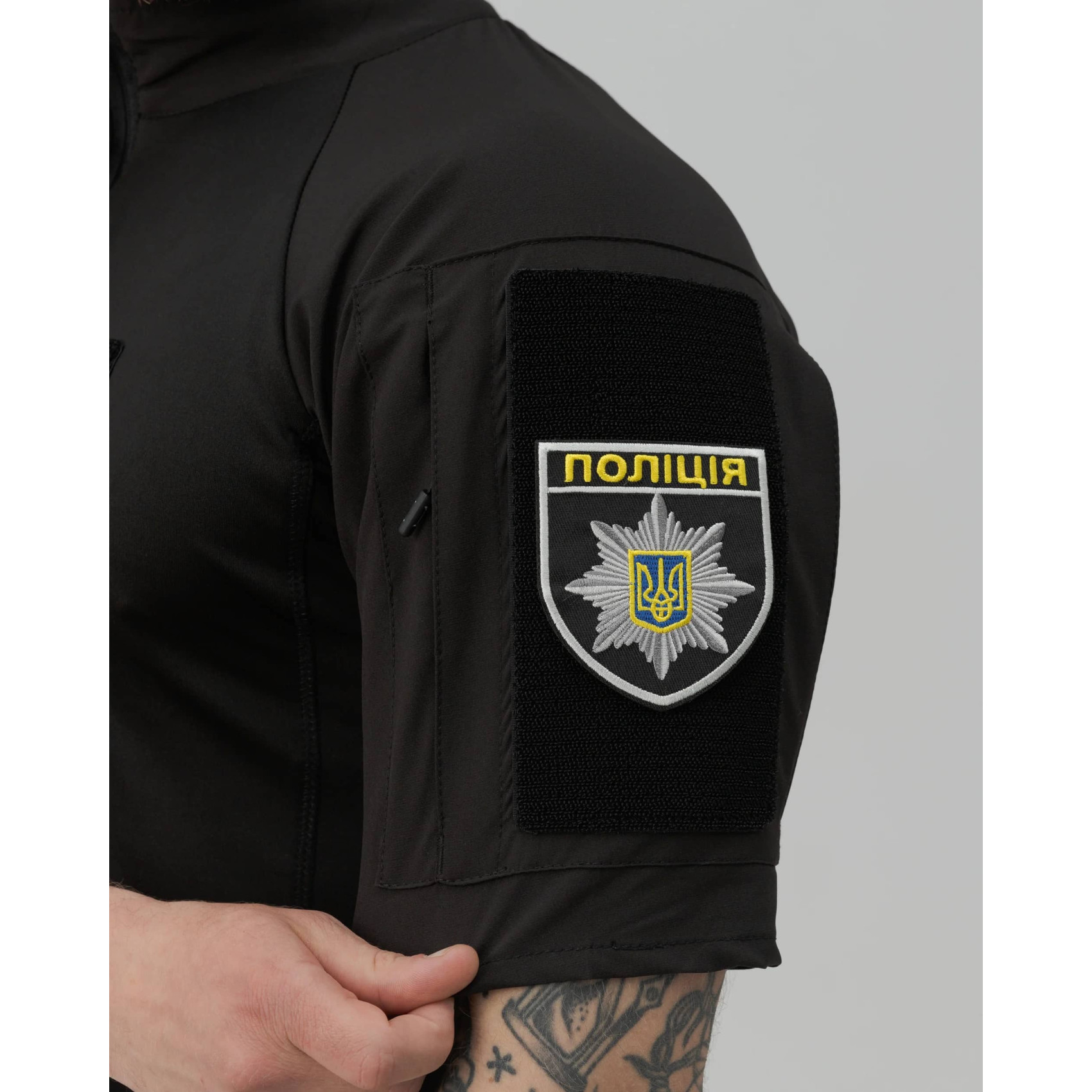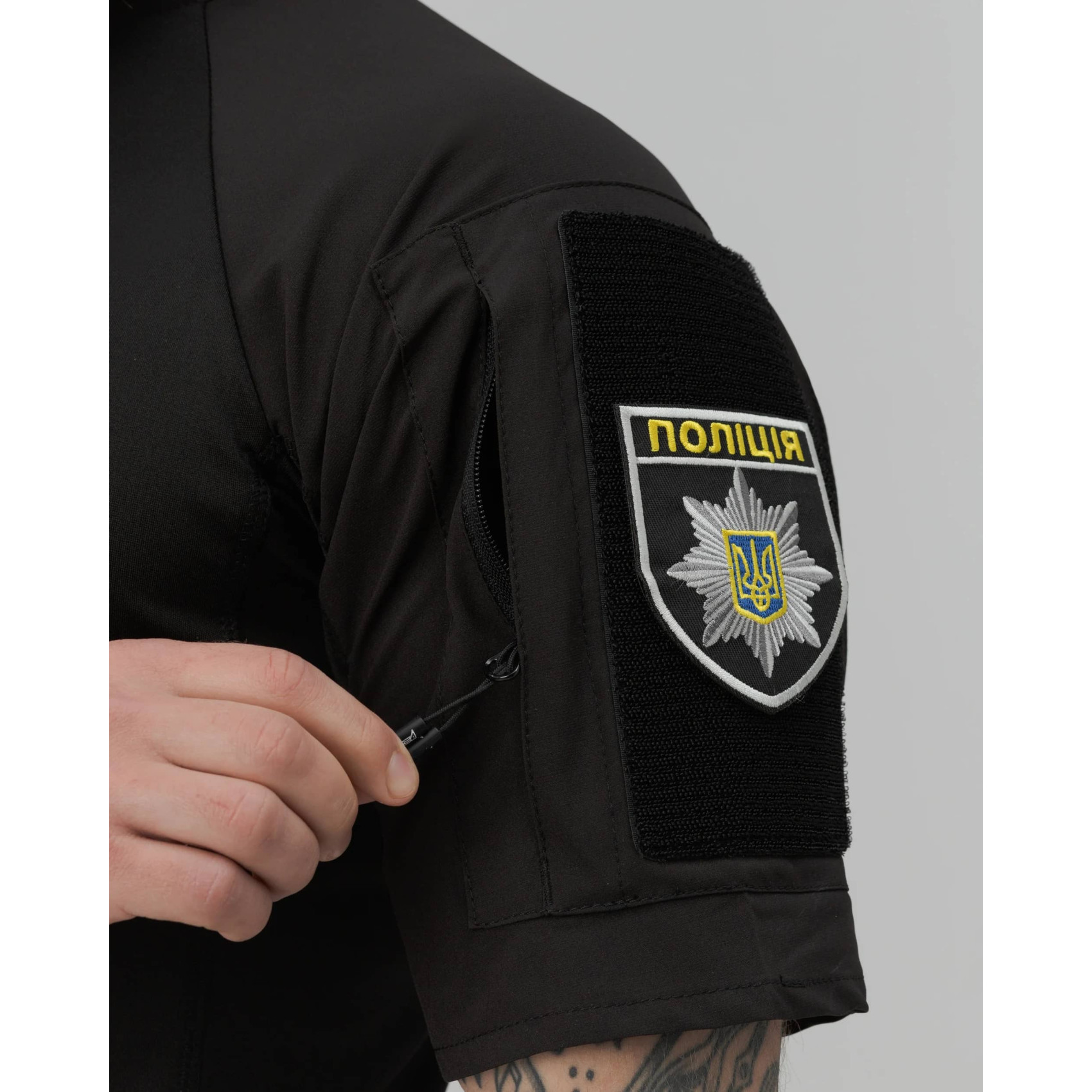 Футболка тактична BEZET Combat Чорний футболка прямого крою з коротким рукавом та високим коміром-стійкою. Основна частина виготовлена з лайкри, рукави та горловина - з плащової тканини Komfort. Особливістю лайкри є те, що вона швидко сохне, легко витирається, має антибактеріальні властивості, легка та приємна до тіла.