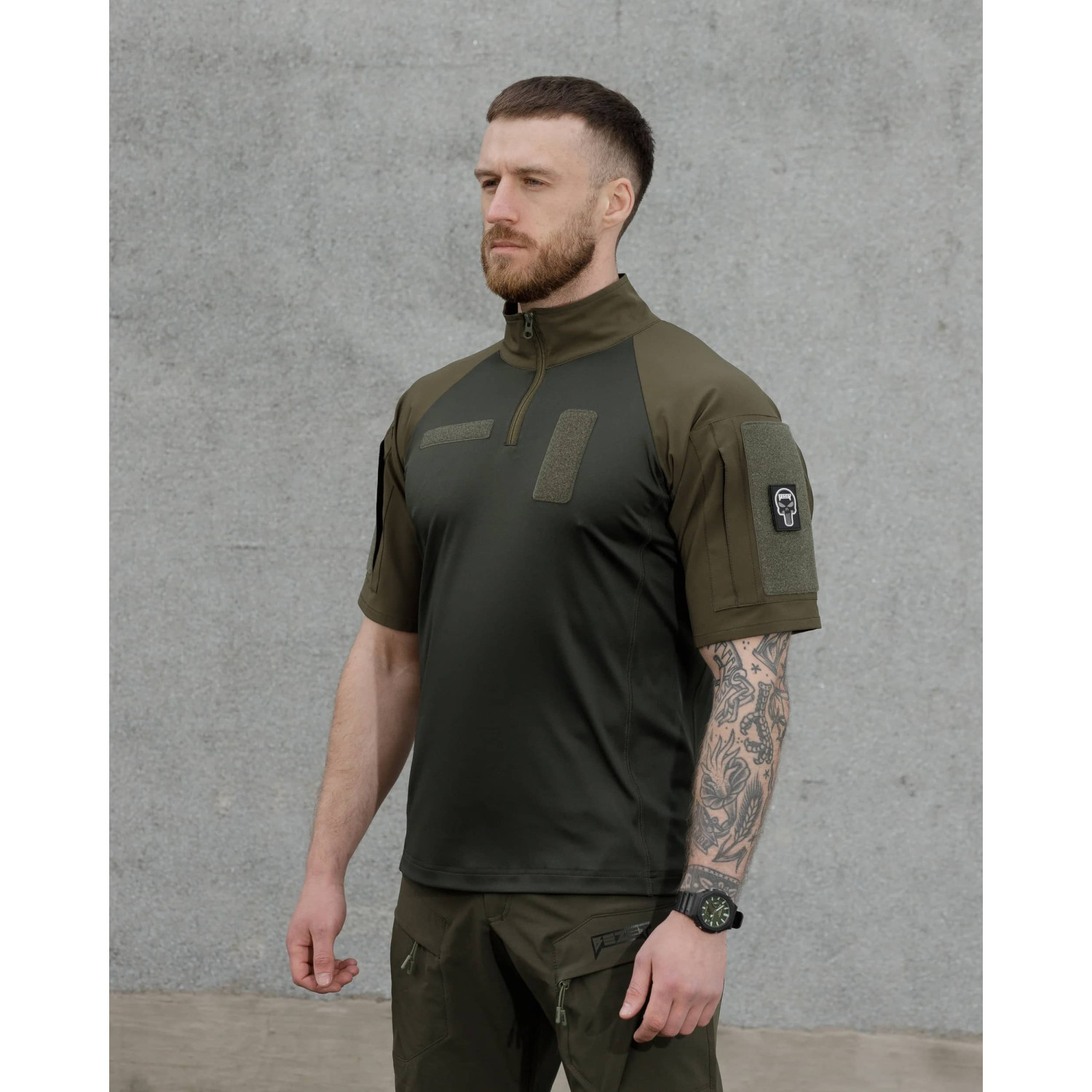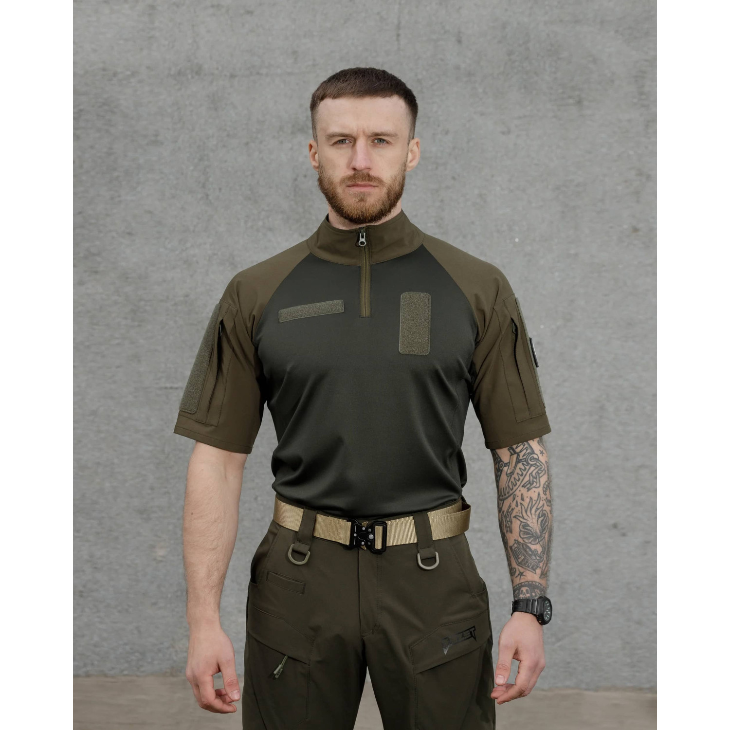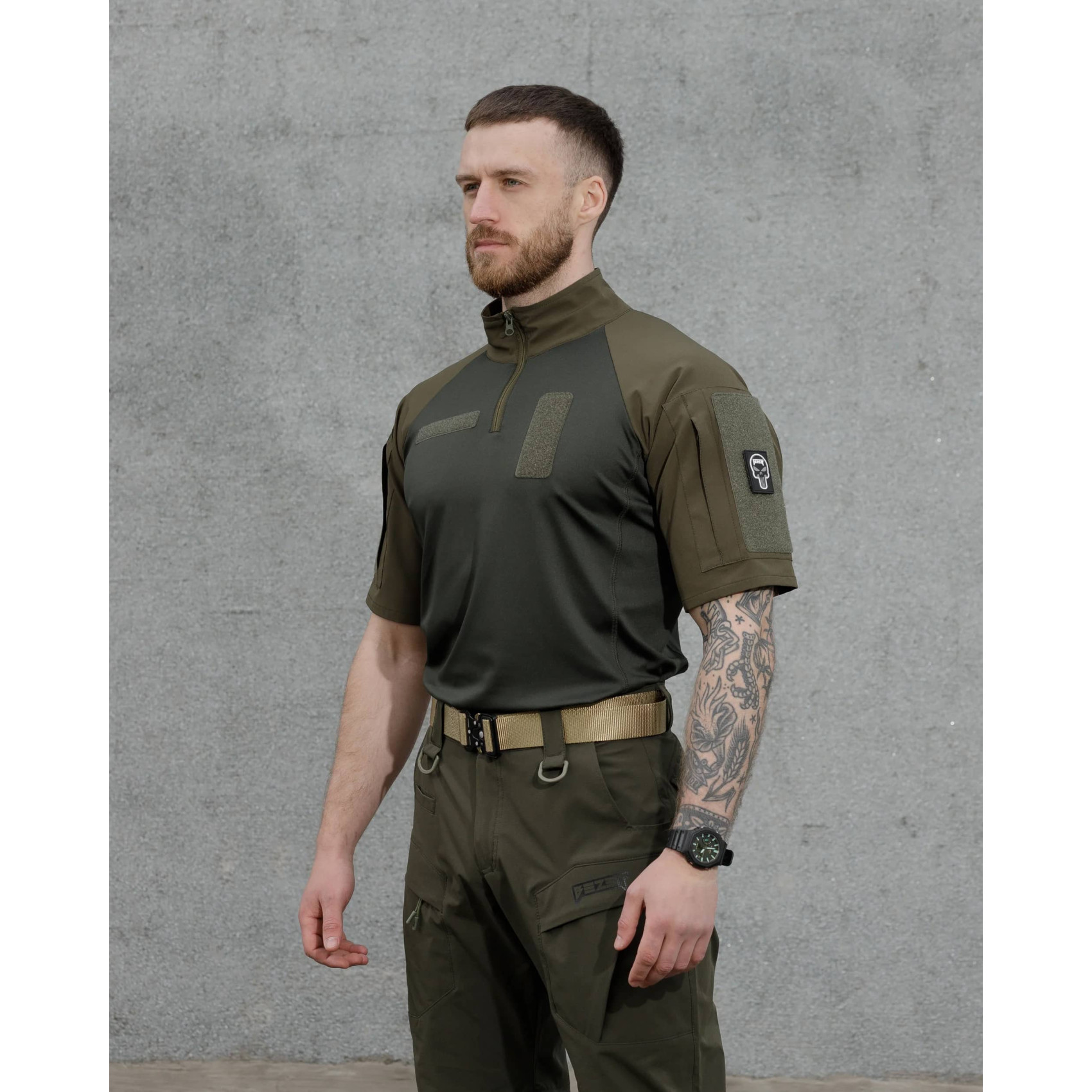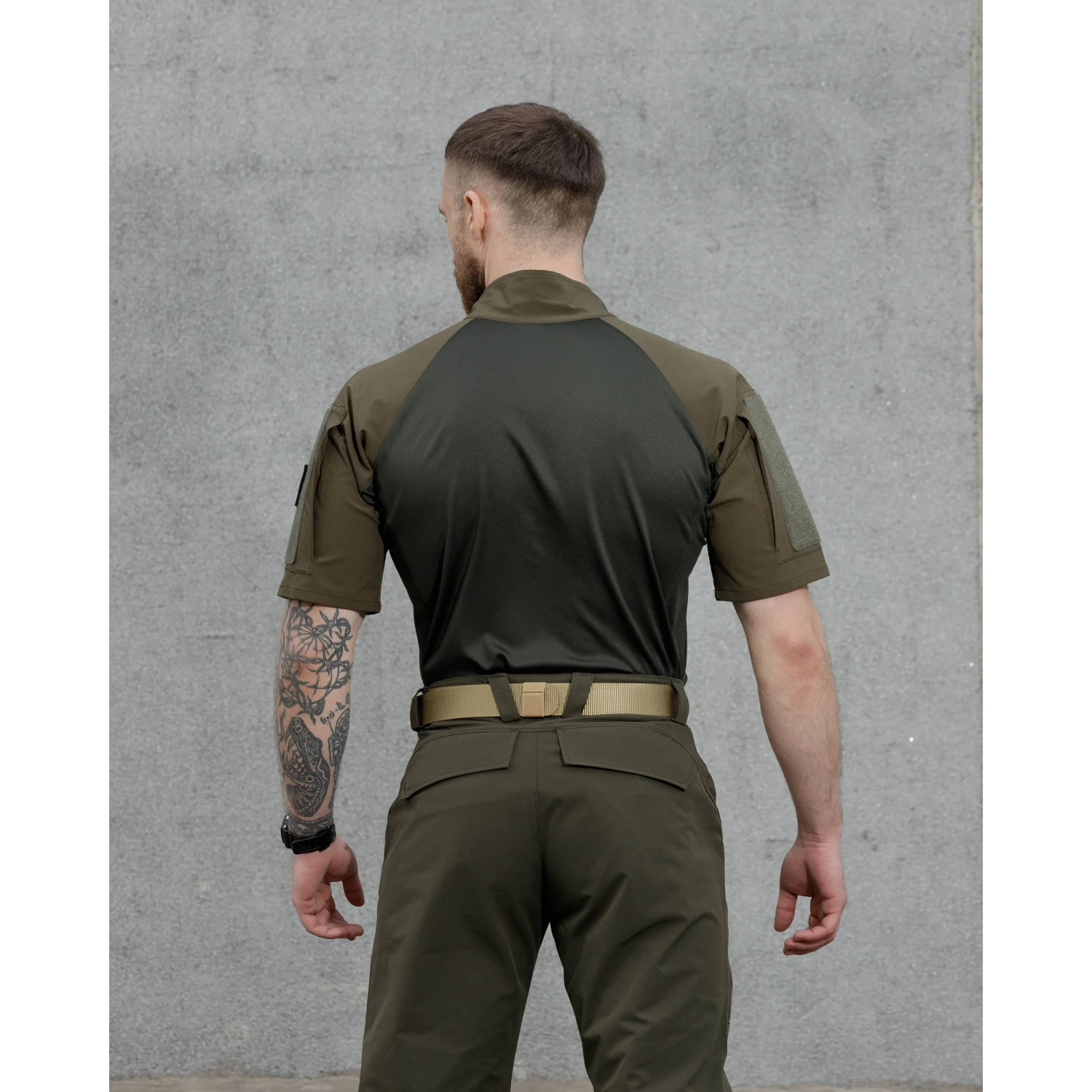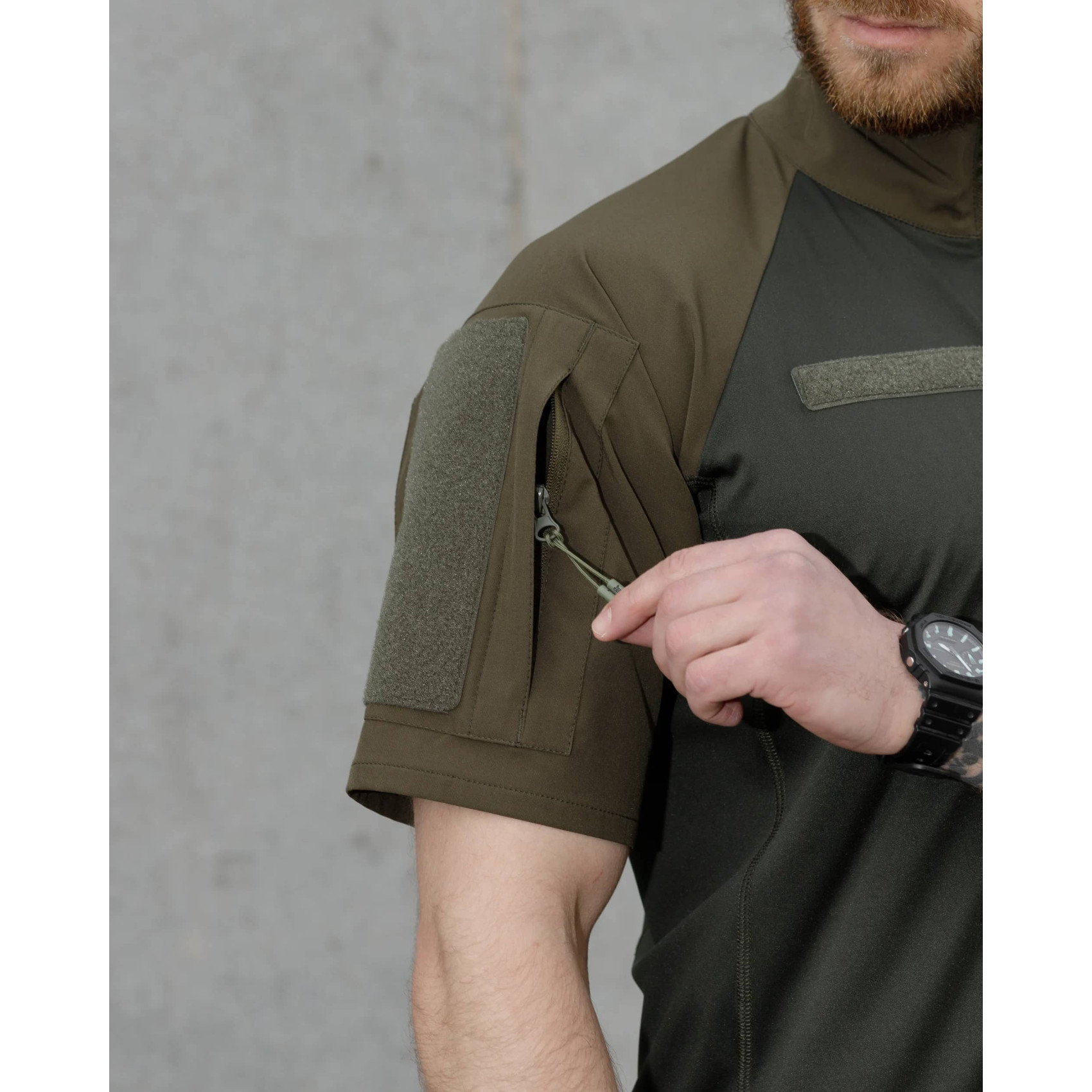 Футболка тактична BEZET Combat Хакі це футболка прямого крою з коротким рукавом та високим коміром-стійкою. Основна частина виготовлена з лайкри, рукави та горловина - з плащової тканини Komfort. Особливістю лайкри є те, що вона швидко сохне, легко витирається, має антибактеріальні властивості, легка та приємна до тіла.