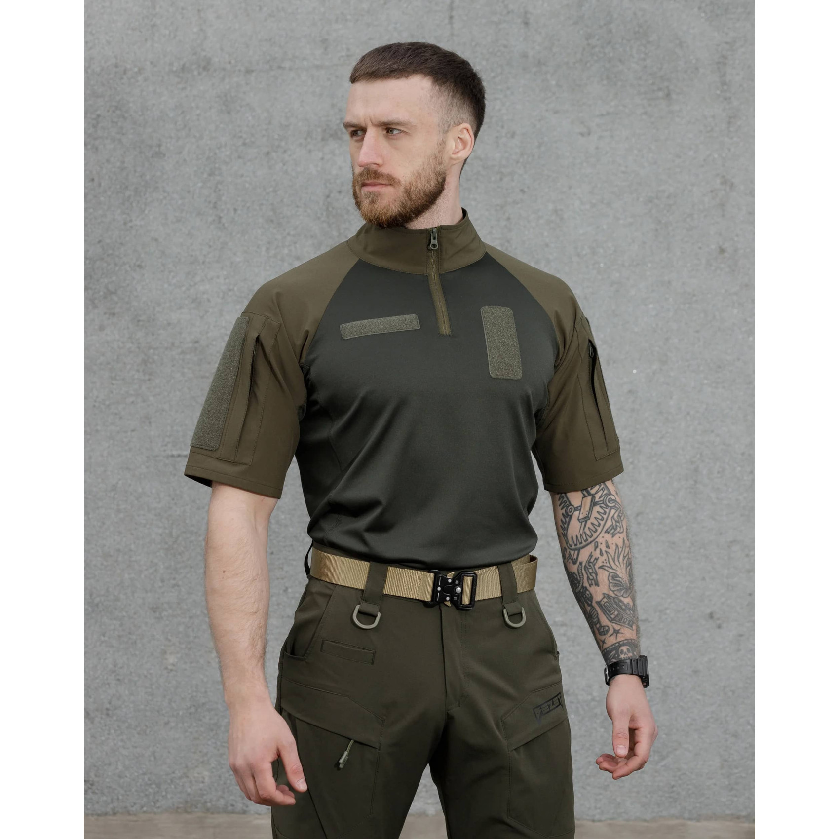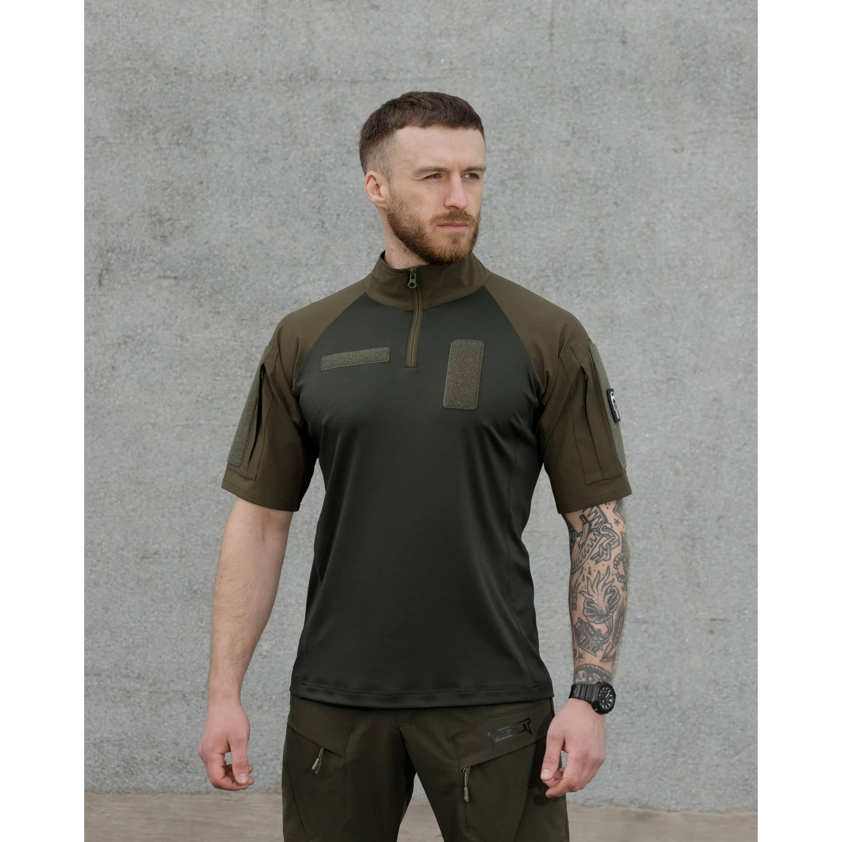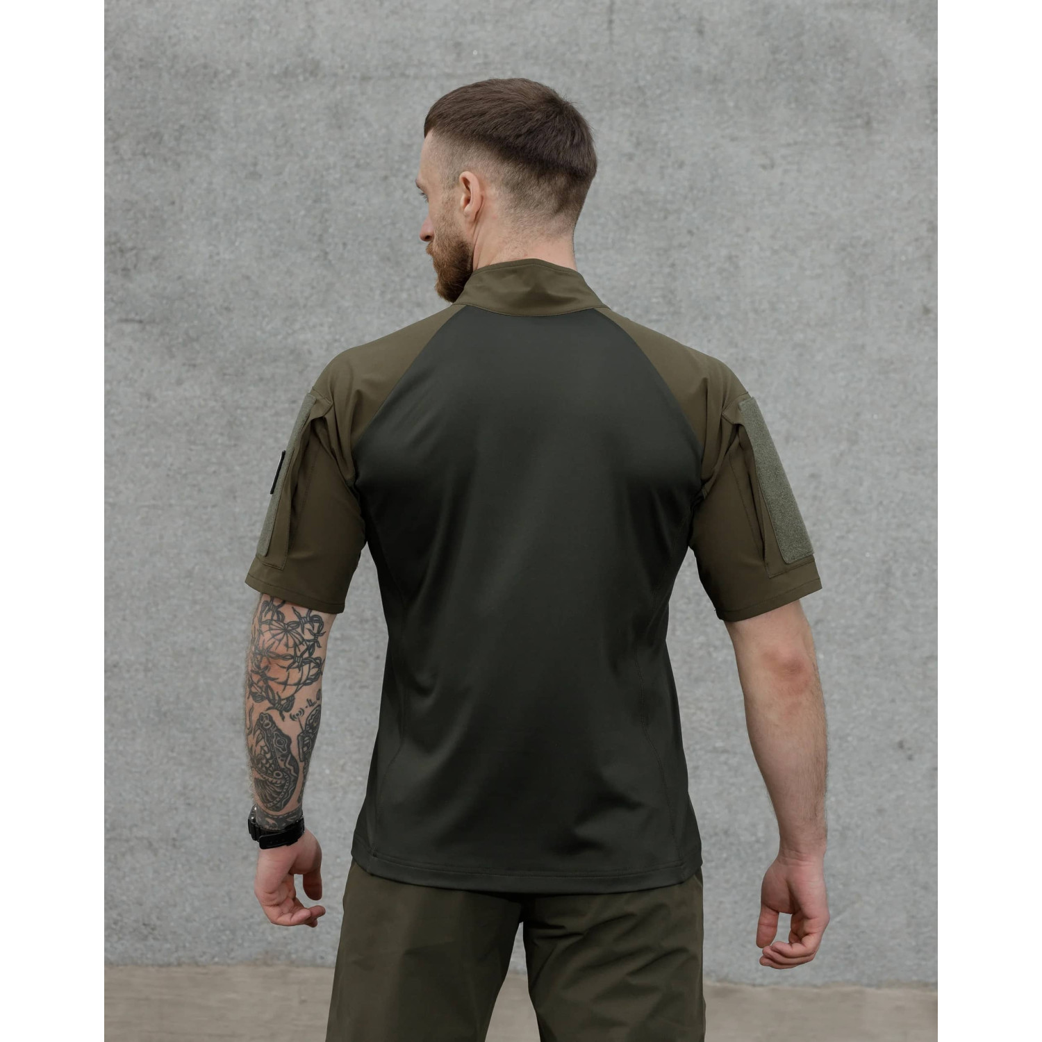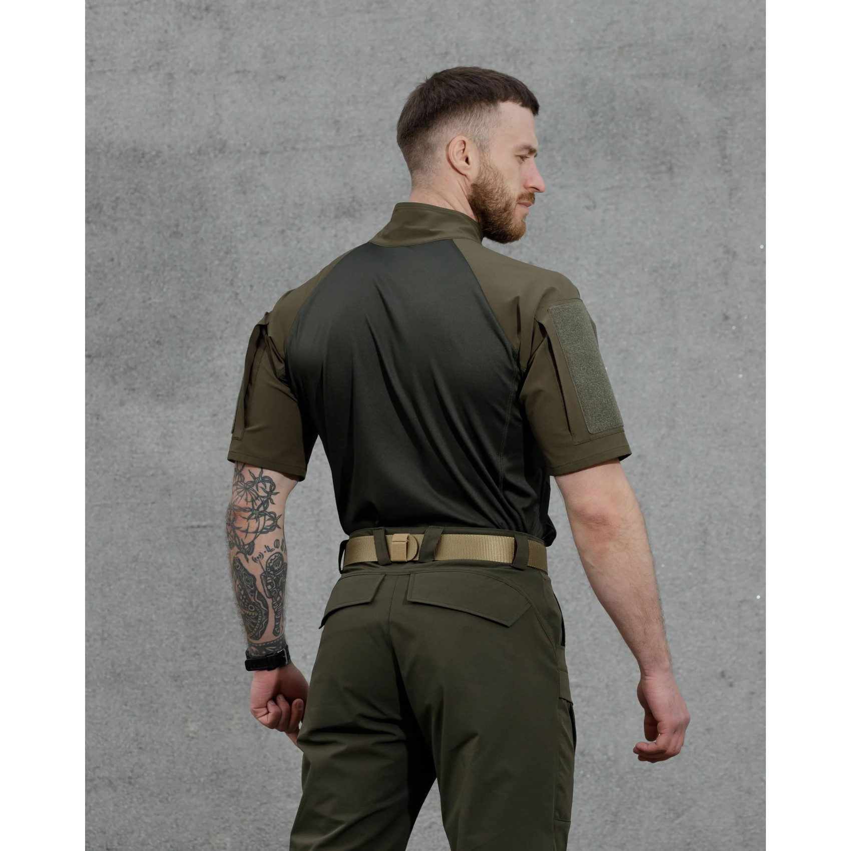 Футболка тактична BEZET Combat Хакі це футболка прямого крою з коротким рукавом та високим коміром-стійкою. Основна частина виготовлена з лайкри, рукави та горловина - з плащової тканини Komfort. Особливістю лайкри є те, що вона швидко сохне, легко витирається, має антибактеріальні властивості, легка та приємна до тіла.