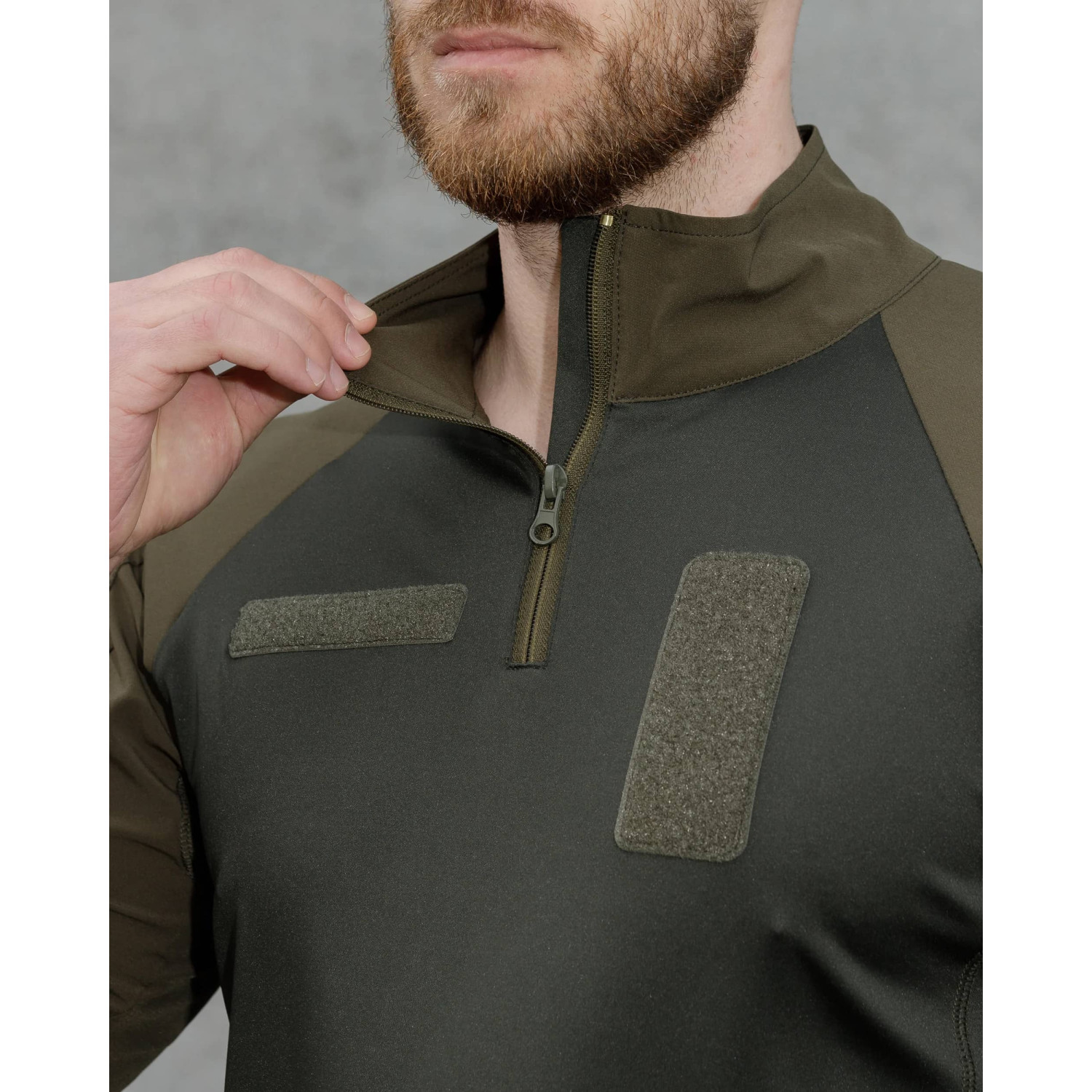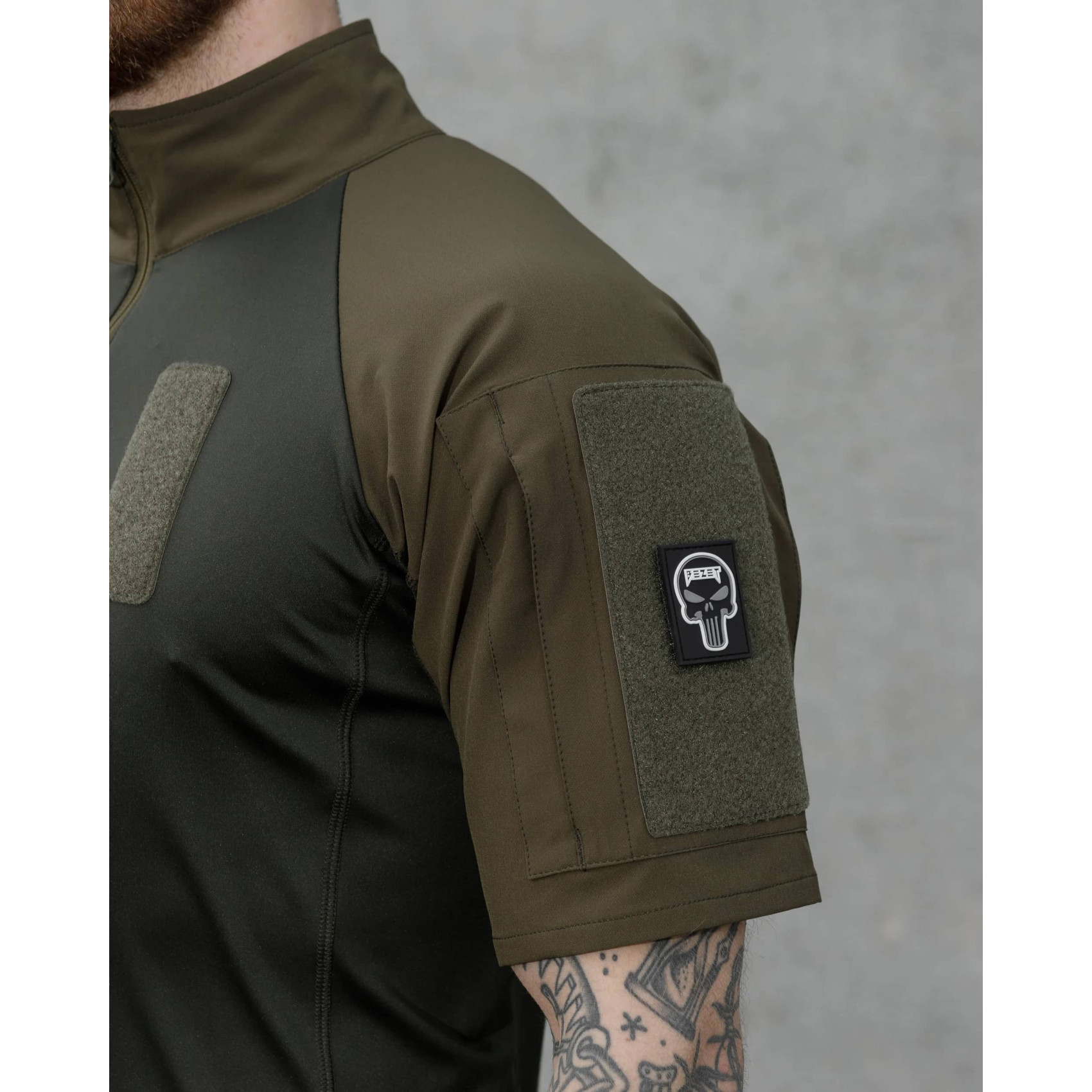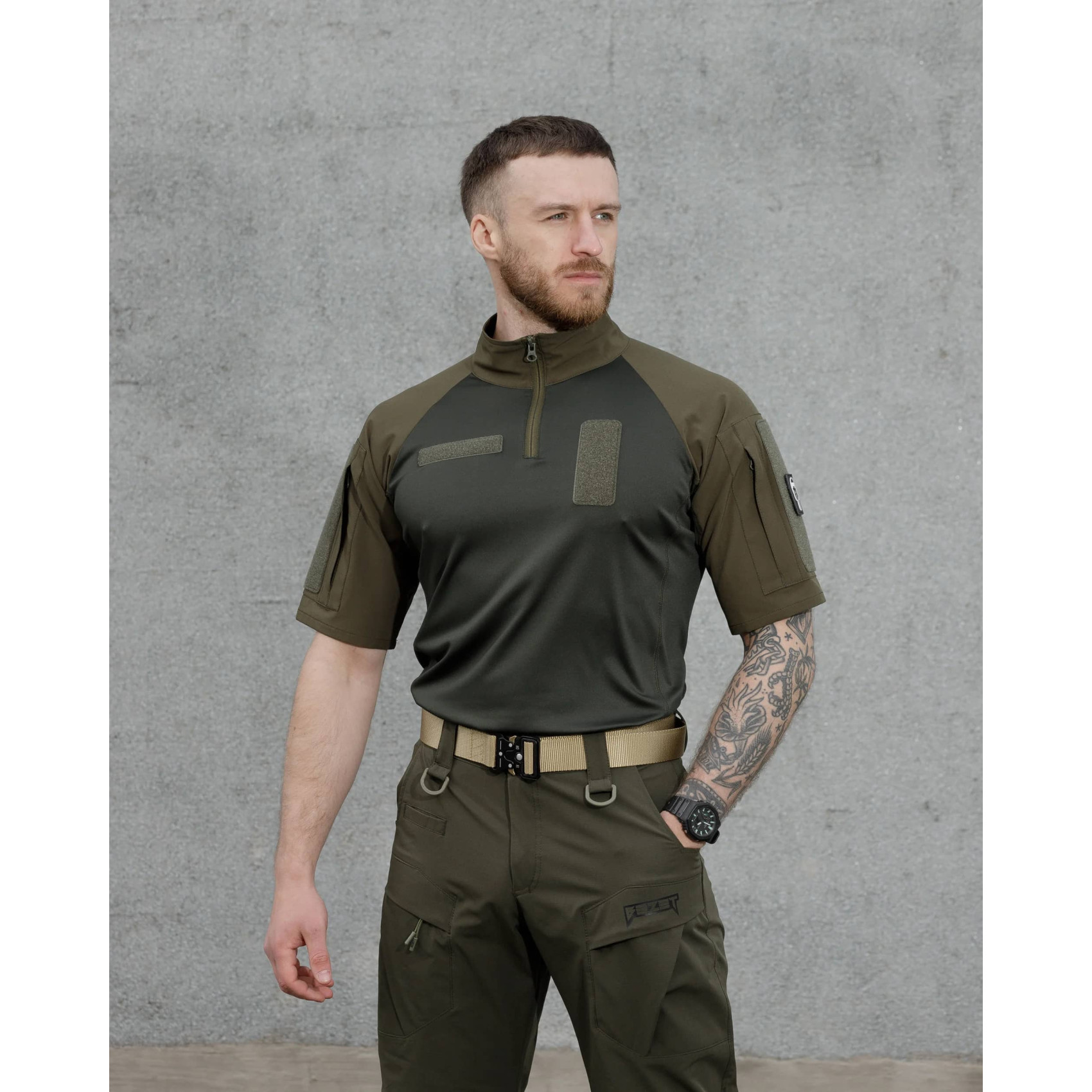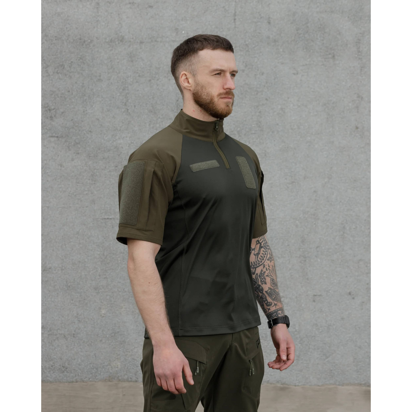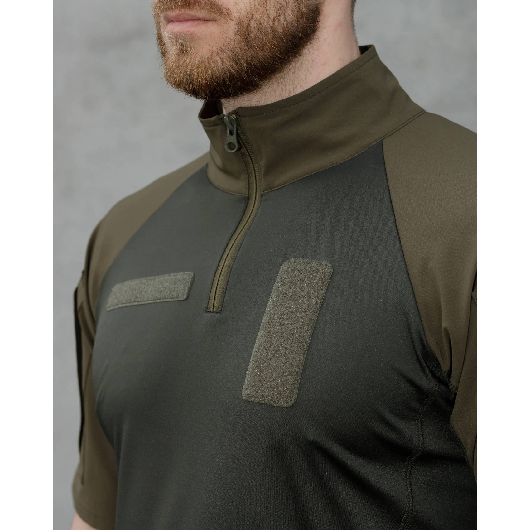 Футболка тактична BEZET Combat Хакі це футболка прямого крою з коротким рукавом та високим коміром-стійкою. Основна частина виготовлена з лайкри, рукави та горловина - з плащової тканини Komfort. Особливістю лайкри є те, що вона швидко сохне, легко витирається, має антибактеріальні властивості, легка та приємна до тіла.