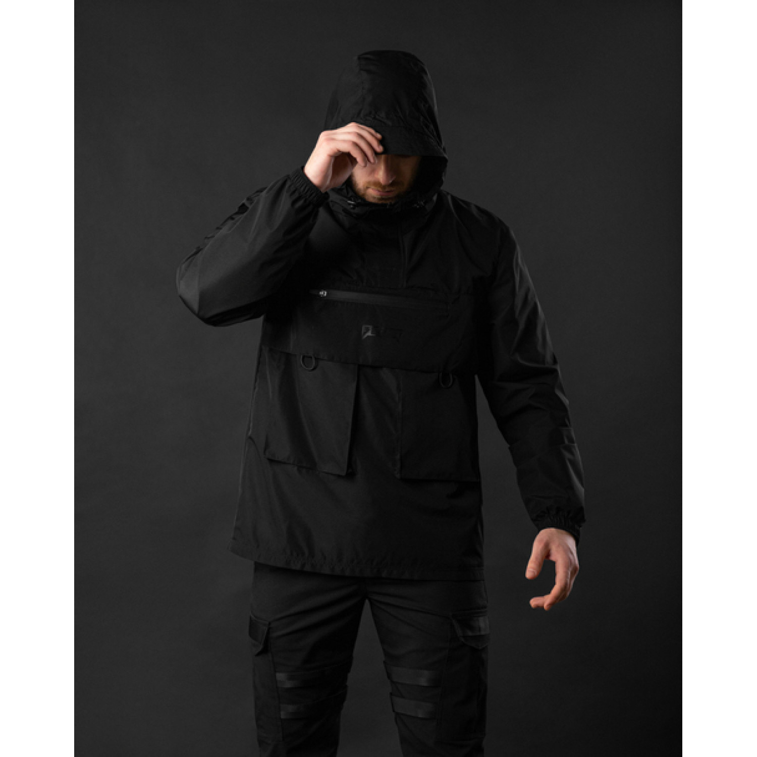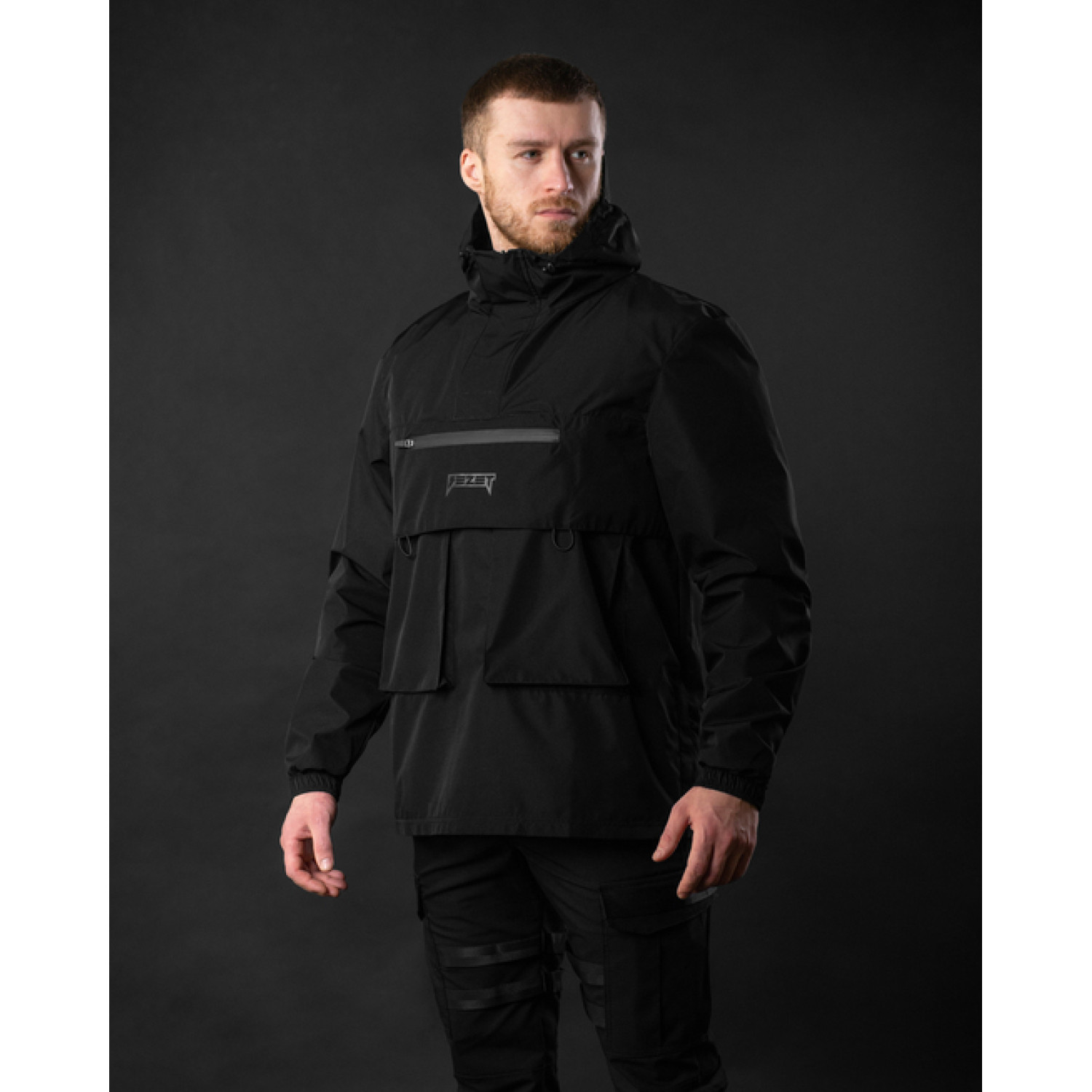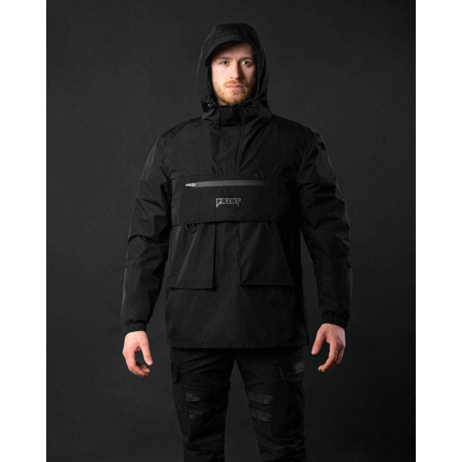 Куртка Анорак Bezet Паркур Чорний виготовлена з якісної європейської плащової тканини на водозахисній мембрані. Верхній шар тканини гладкий та приємний на дотик, нижній - це м'яка та міцна мембрана. Головна перевага даної плащової тканини це її водостійкість. Завдяки мікропористій структурі вона не пропускає краплі води ззовні, а пропускає лише молекули води (водяну пару) зсередини, що сприяє комфортному випаровуванню вологи тіла.