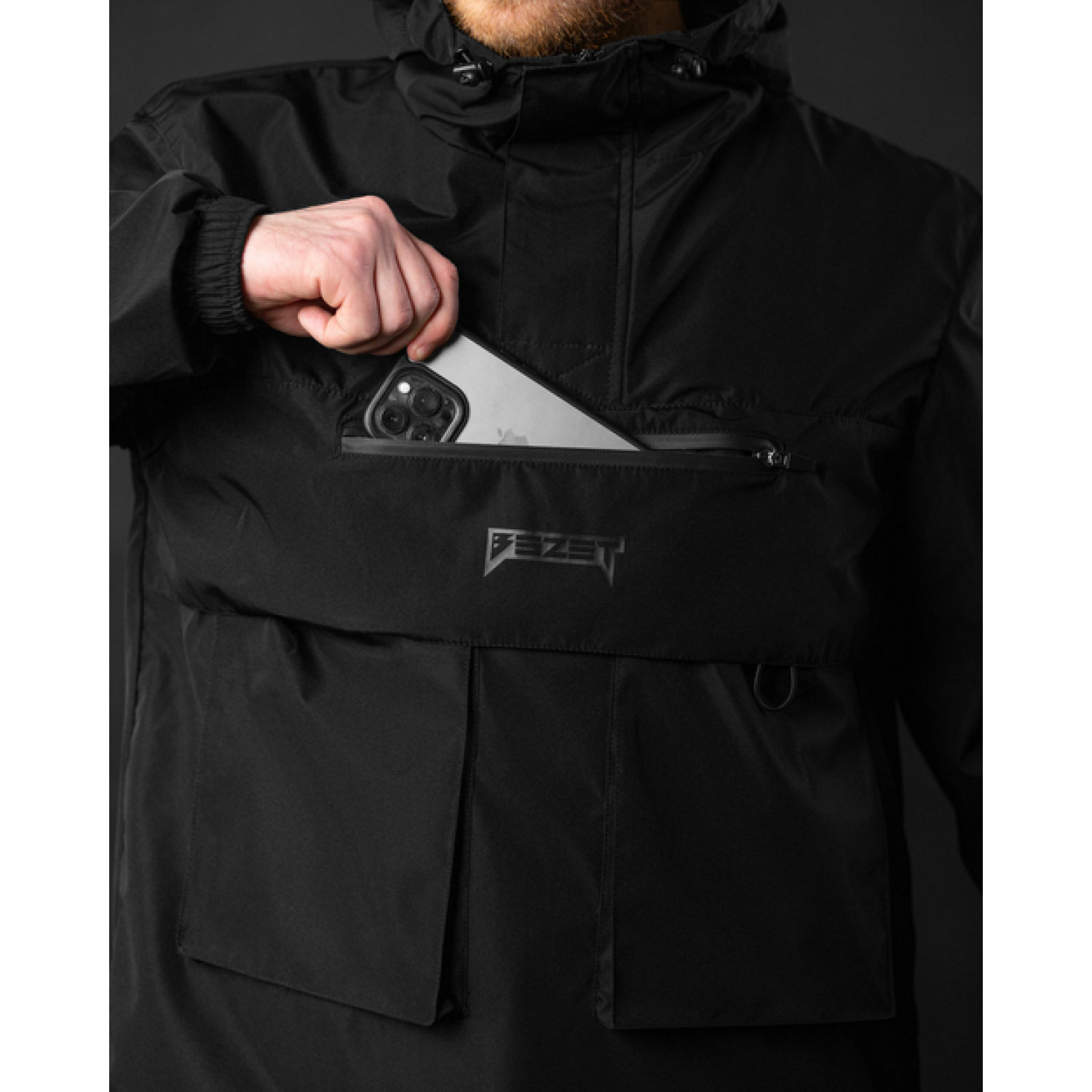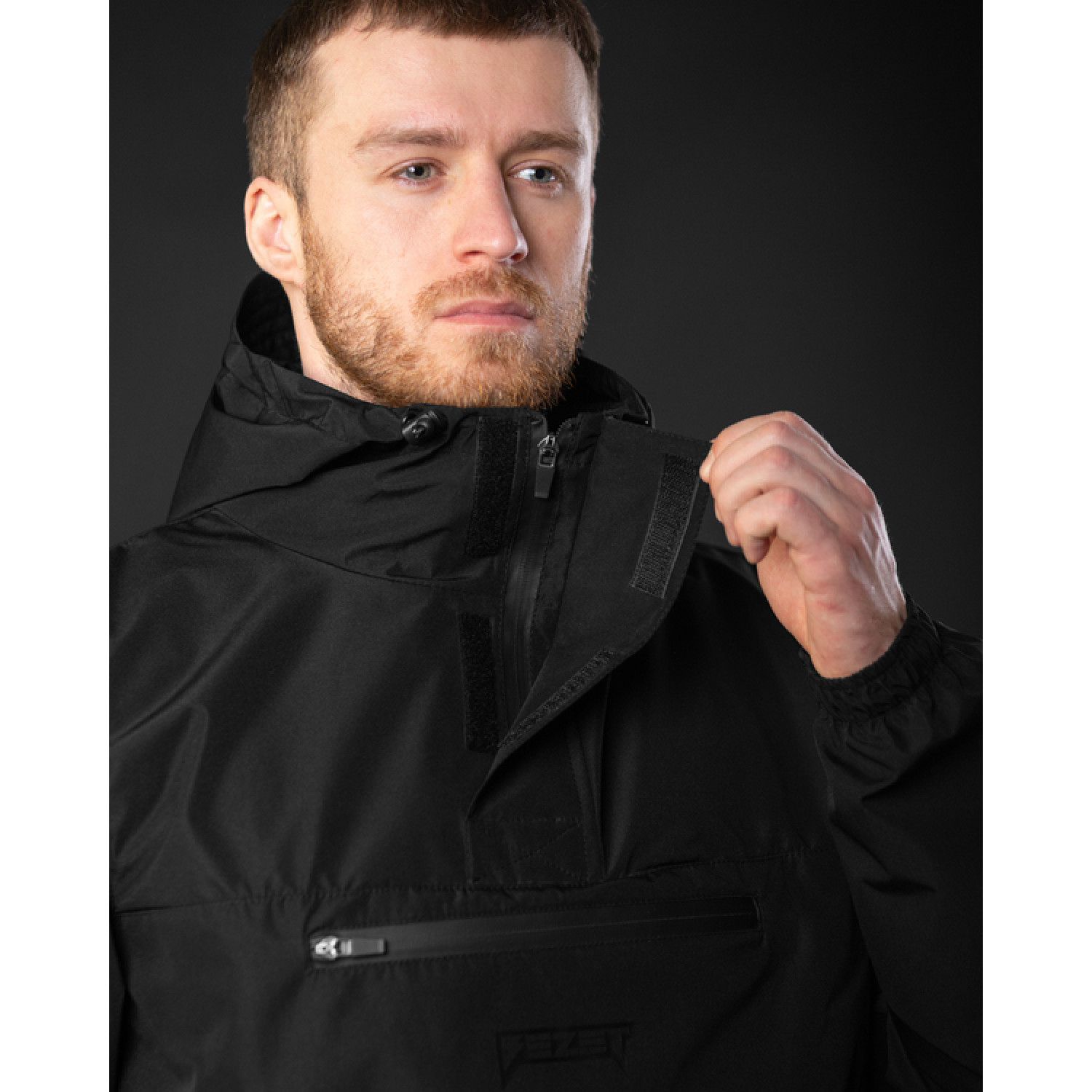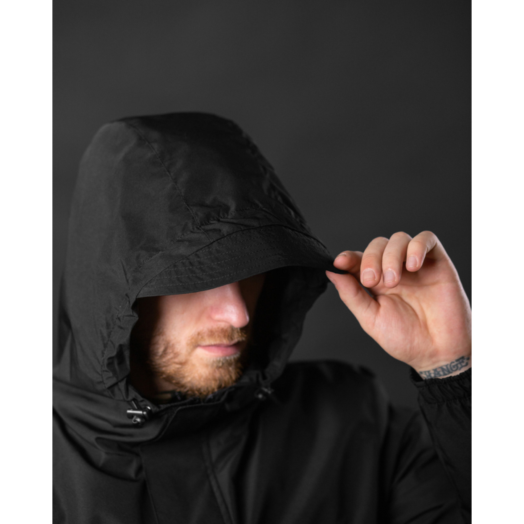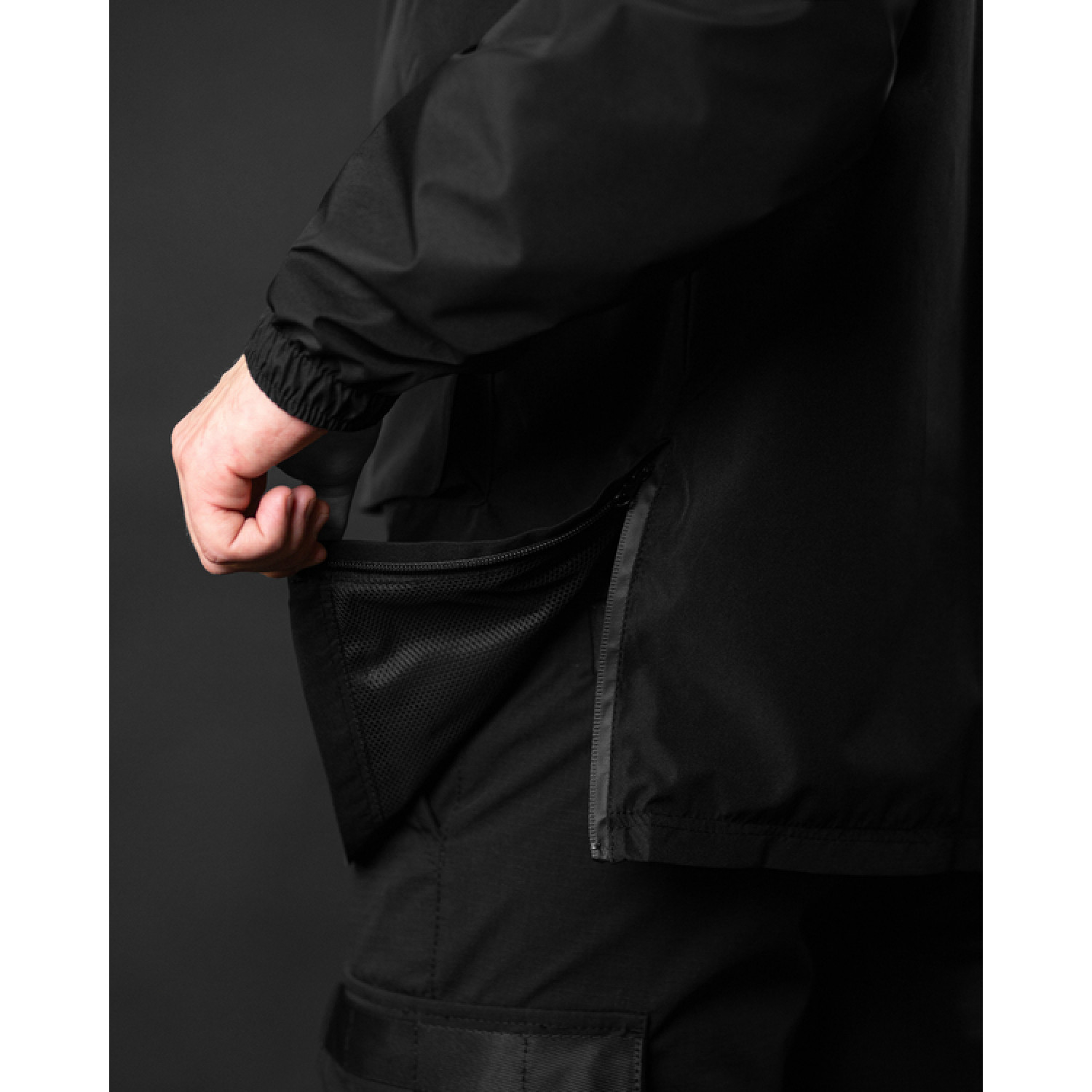 Куртка Анорак Bezet Паркур Чорний виготовлена з якісної європейської плащової тканини на водозахисній мембрані. Верхній шар тканини гладкий та приємний на дотик, нижній - це м'яка та міцна мембрана. Головна перевага даної плащової тканини це її водостійкість. Завдяки мікропористій структурі вона не пропускає краплі води ззовні, а пропускає лише молекули води (водяну пару) зсередини, що сприяє комфортному випаровуванню вологи тіла.