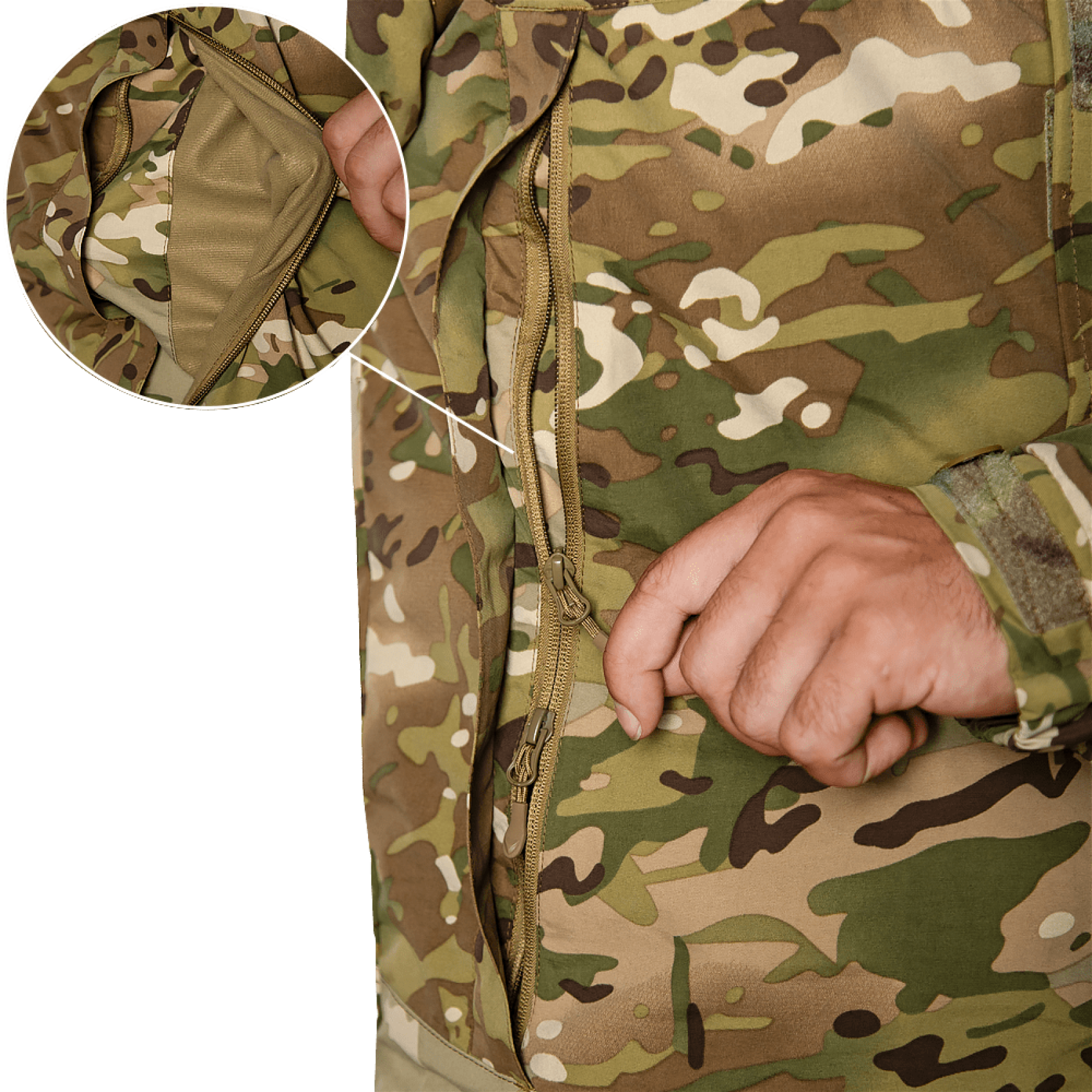 Куртка Унісекс Camotec Defender 7 level Мультикам створена спеціально для воєнізованих структур, які потребують надійного захисту та максимального комфорту в складних погодних умовах просто неба.