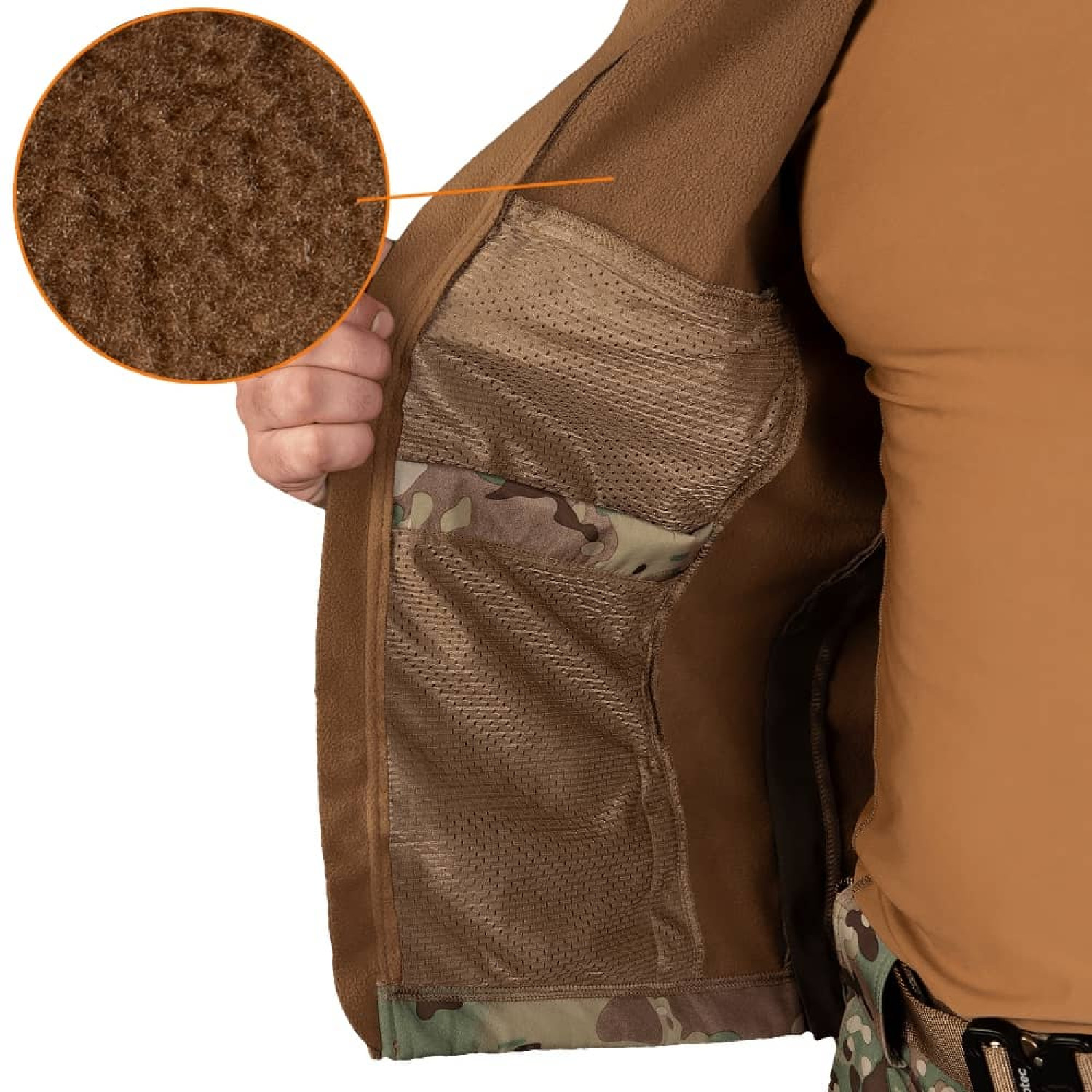 Однією з особливостей нашої куртки є спеціальні вирізи по боках - для Вашого швидкого доступу до зони поясу. Зазвичай на поясі кріпиться кобура зі зброєю або пояс із додатковим спорядженням, а ці вирізи надають Вам швидкий доступ до цієї зони (відкриття займає кілька секунд одним рухом). Самі вирізи застібаються застібкою-блискавкою і фіксуються липучкою.