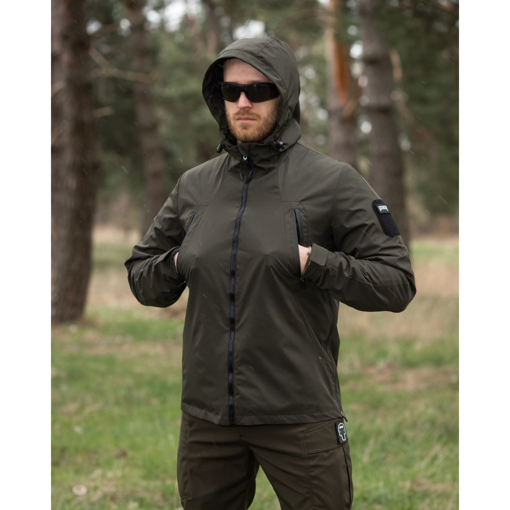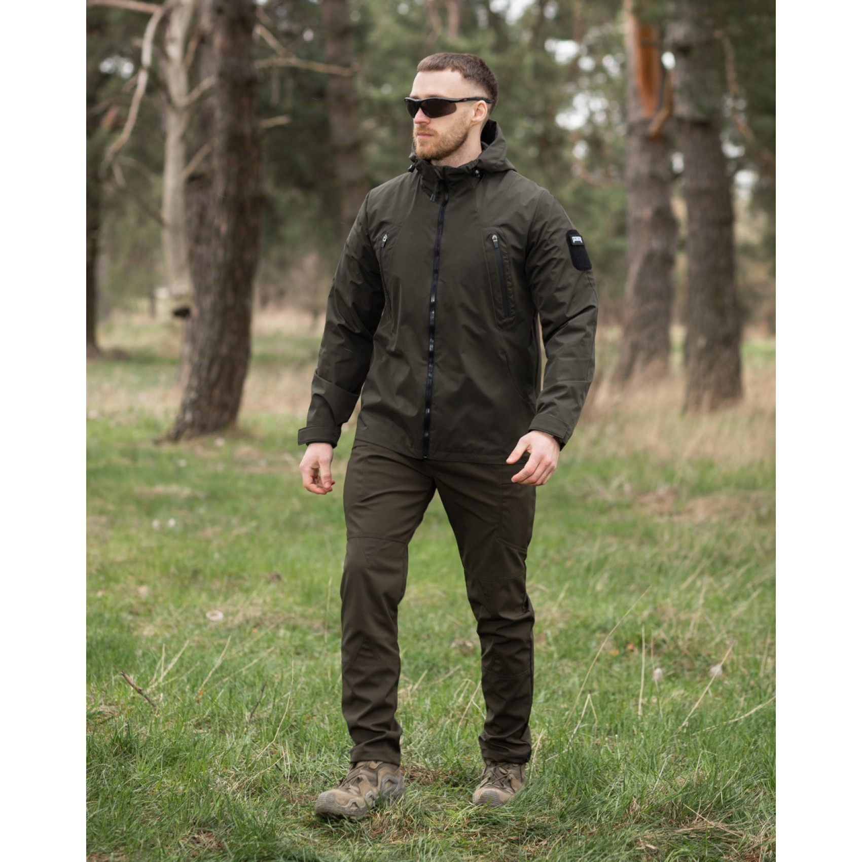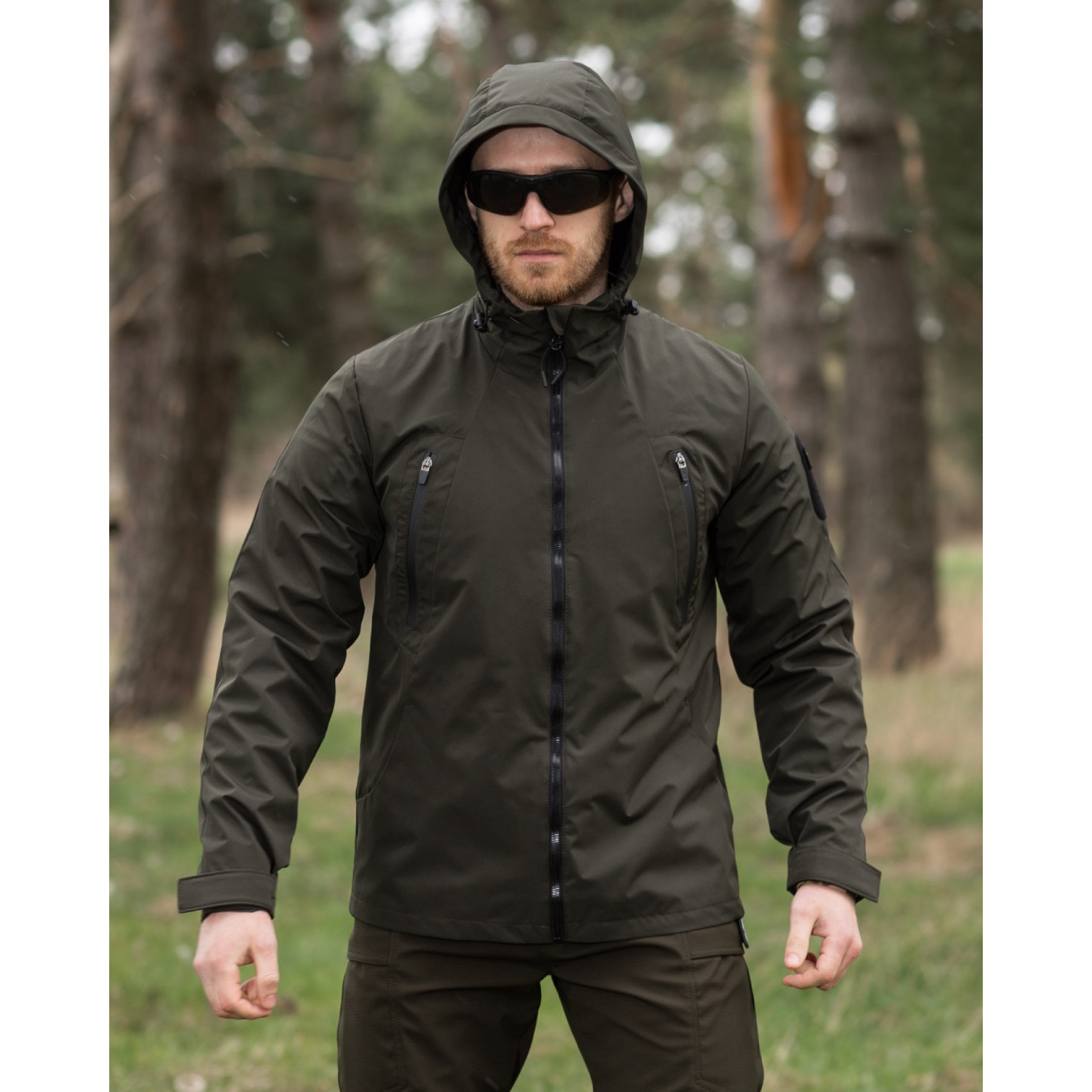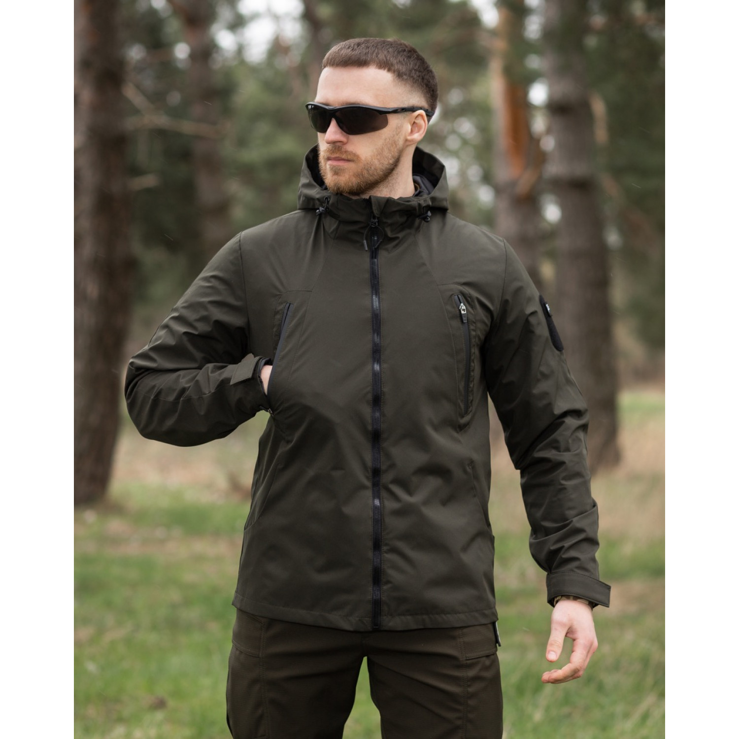 Куртка вітровка Bezet Траєкторія Олива виготовлена з міцної європейської плащової тканини з водовідштовхувальною мембраною, що забезпечує надійний захист від вітру і води.