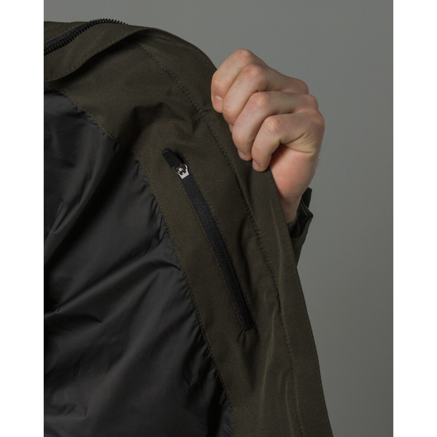 - Дві кишені на прорезинених блискавках з бігунками автоматичної фіксації;