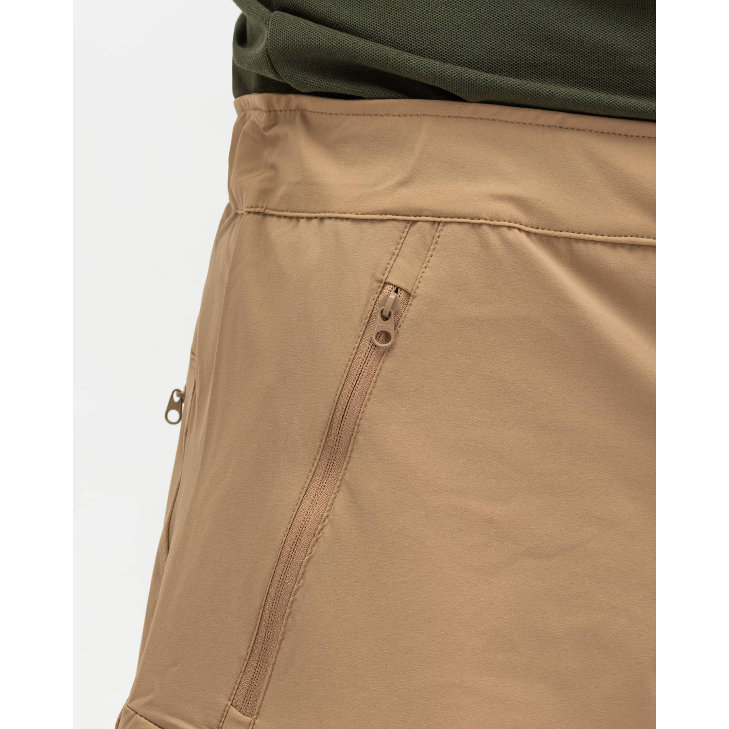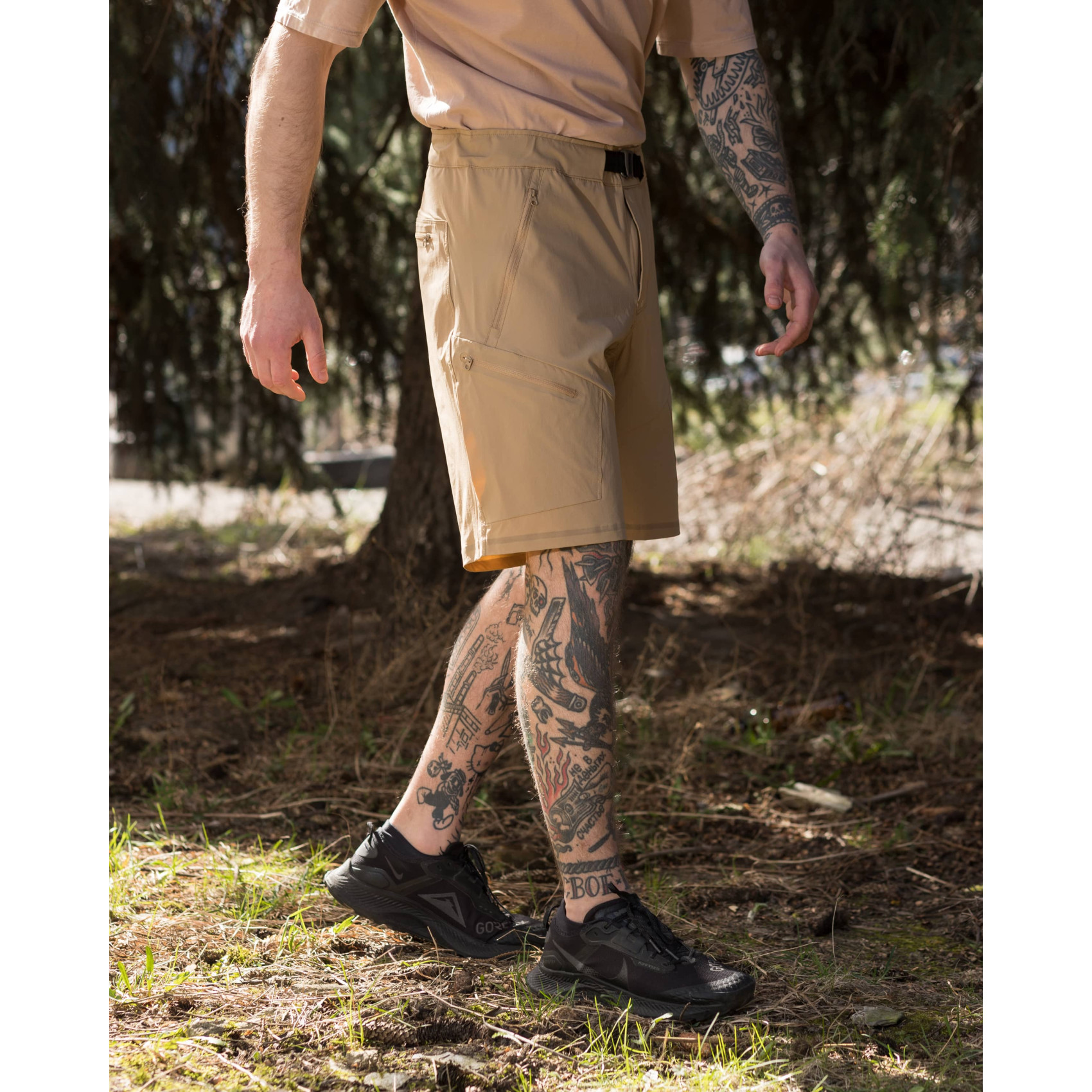 Експлуатація ультра-легких і вкрай гнучких шортів Bezet Adventure Койот стає ще більш комфортною завдяки їхньому швидкому висиханню. Вони створені з високотехнологічного матеріалу, відомого своєю міцністю та еластичністю. Ваші пригоди в них будуть ще більш захопливими завдяки особливостям плащової тканини, зокрема: