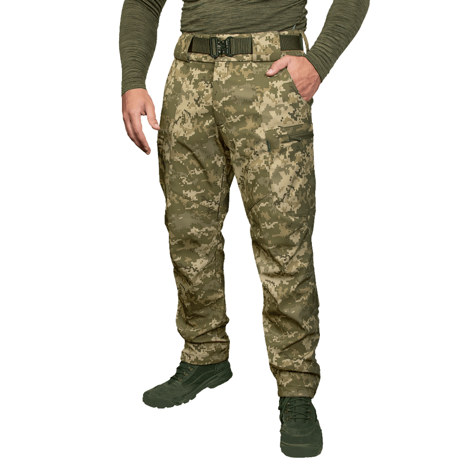 Штани Camotec SoftShell Vent Піксель виготовлені з оригінальної тканини SoftShell. Це сучасний матеріал, що має справжню безпорову мембрану, яка містить три шари: мікрофліс, що зберігає тепло; мембрану, що захищає від вітру та вологи; а також еластичний поліестер із вологостійким просоченням, що забезпечує захист від пилу, бруду та вологи.