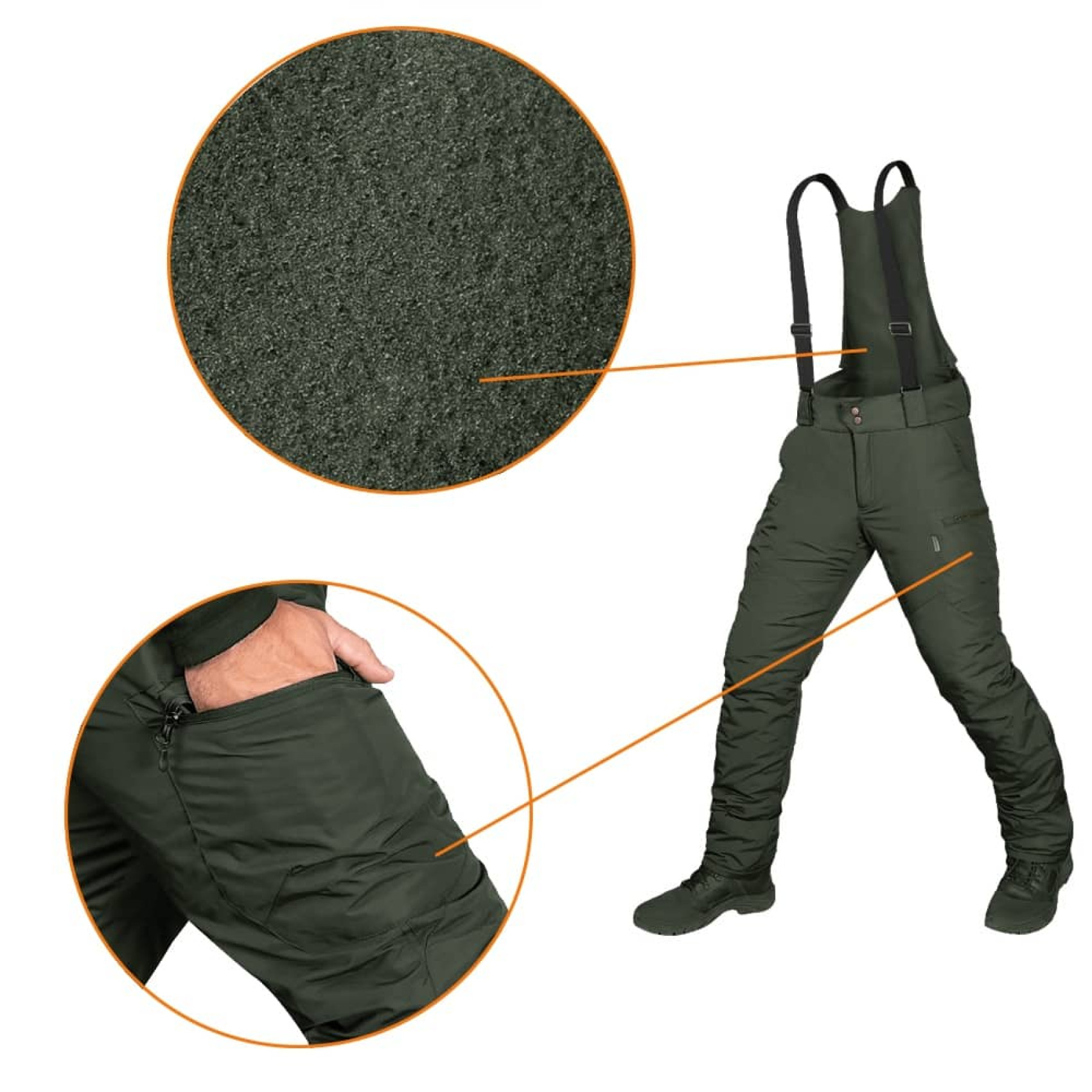 Якісне зберігання тепла надає TEMPLOFT. Це — інноваційний український утеплювач, розроблений під час війни з росією. Ефективну терморегуляцію забезпечують внутрішні камери, які захоплюють тепле повітря. Матеріал легкий, являє собою аналог натуральному пуху. Завдяки своїй структурі, TEMPLOFT не лізе через тканину, не намокає, а також має високу пружність. Всередині штани мають простьобаний підклад з приємного на дотик нейлону, що запобігає збиванню утеплювача.