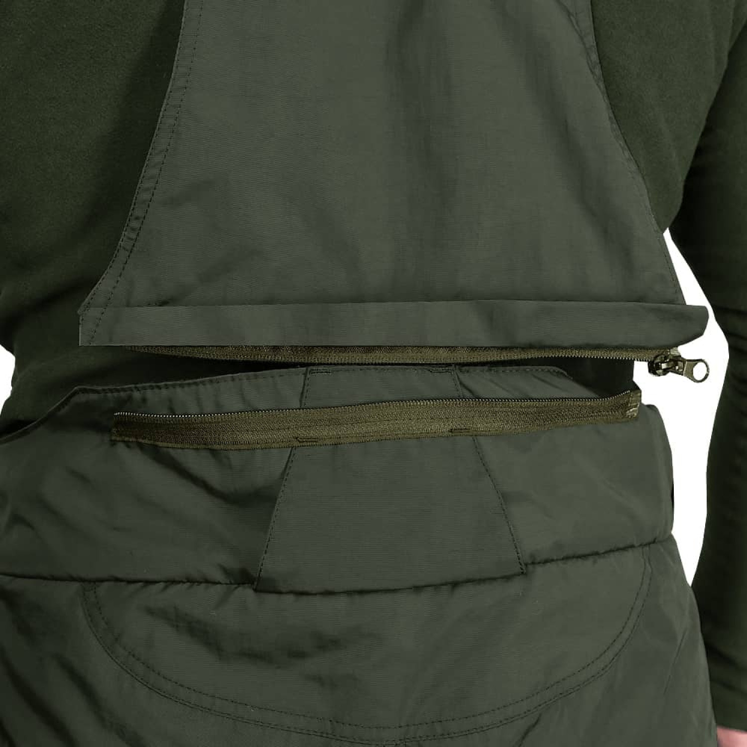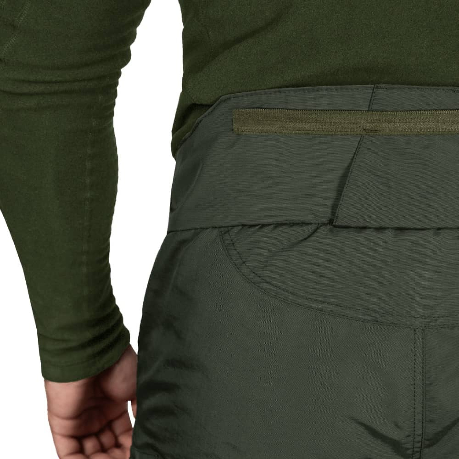 Особливість зимових штанів Patrol — утеплена спинка з підтяжками. Вона додатково захищає від продування та функціонально запобігає від сповзання штанів. Спинка кріпиться на блискавку, підтяжки фіксуються спереду липучками.