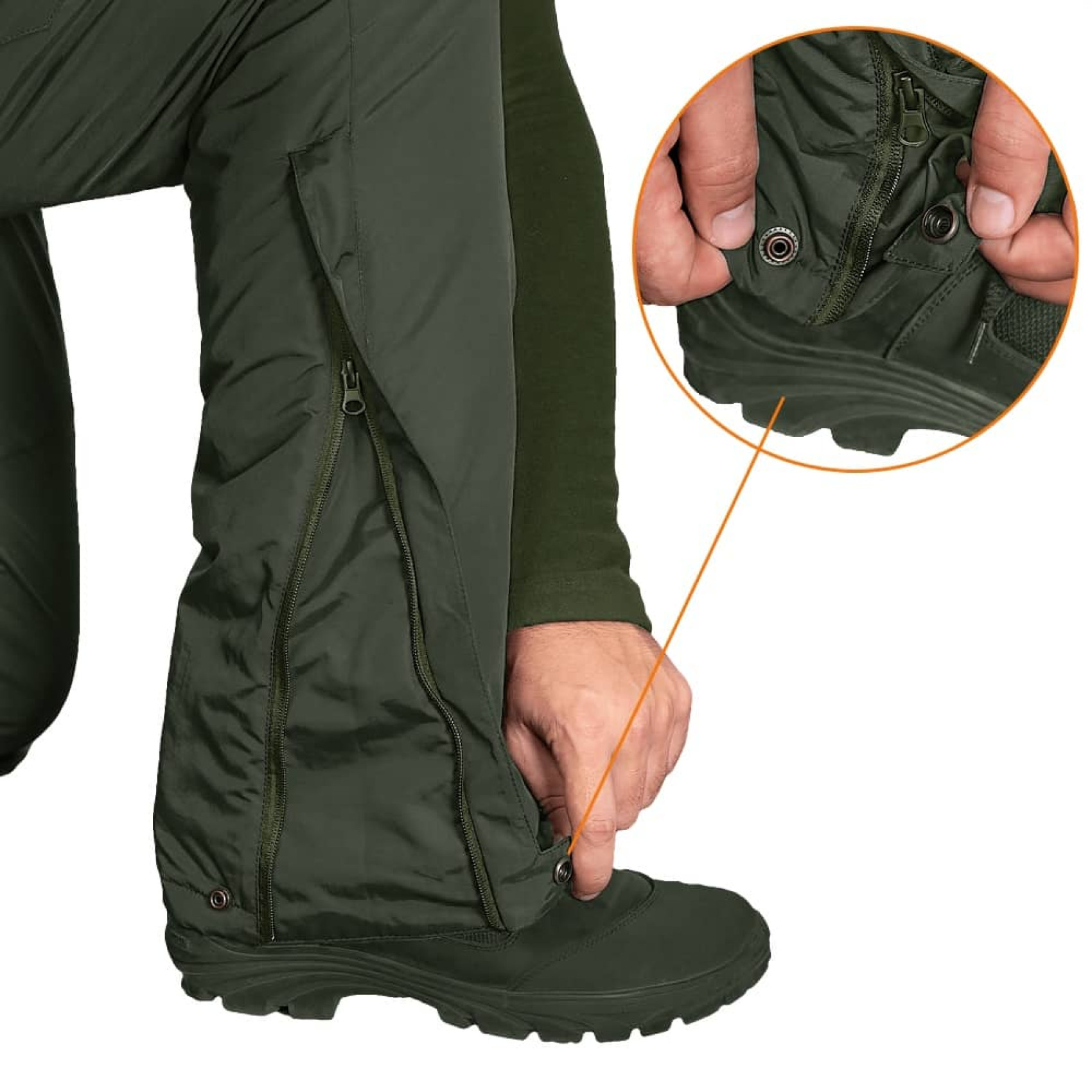 Patrol Taslan вироблені в сучасному дизайні, мають зручний ергономічний крій з конструктивними виточками на колінах, як враховують анатомію людини. Оздоблені утепленим поясом, який захищає поперек від продування. Застібаються на блискавку та дві металеві заклепки. Знизу об’єм штанів регулюється блискавками по боках, які застібаються на металеву заклепку.