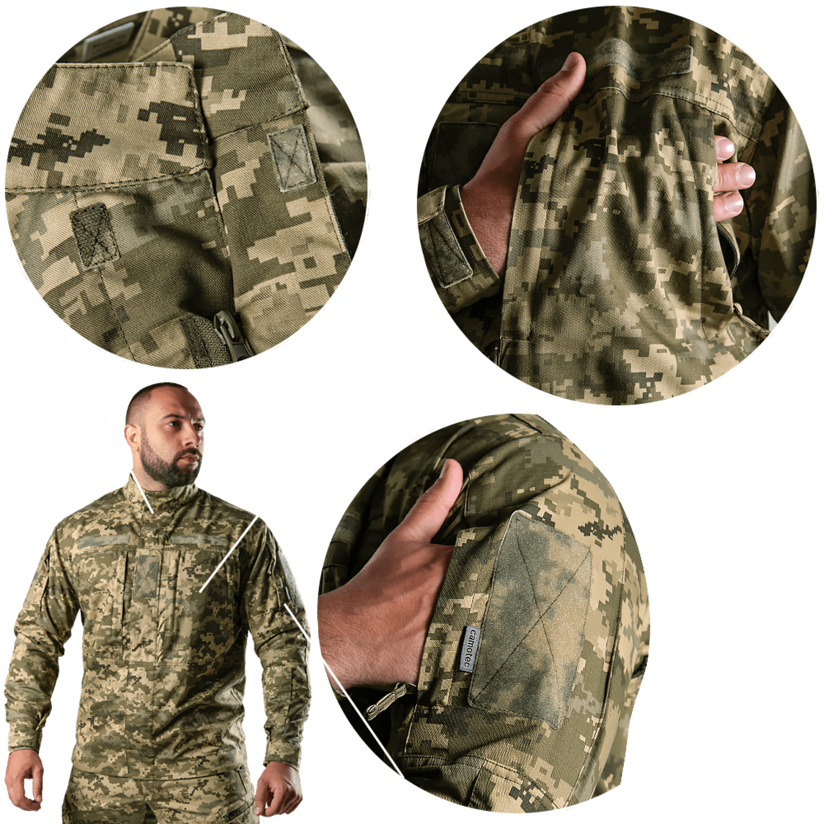 Тактичний кітель Camotec Blitz Twill Піксель ідеально підходить для військових і воєнізованих структур.