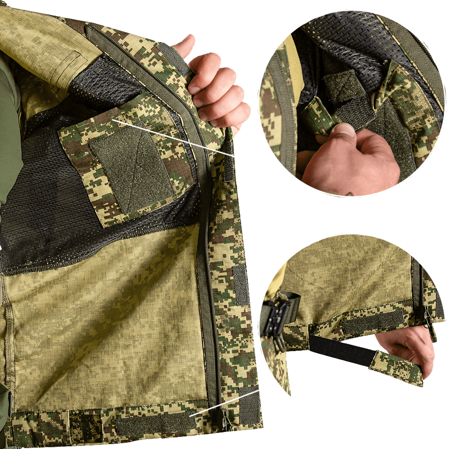 - З боків на рукавах присутні кишені з липучками під патчі та шеврони зверху.
