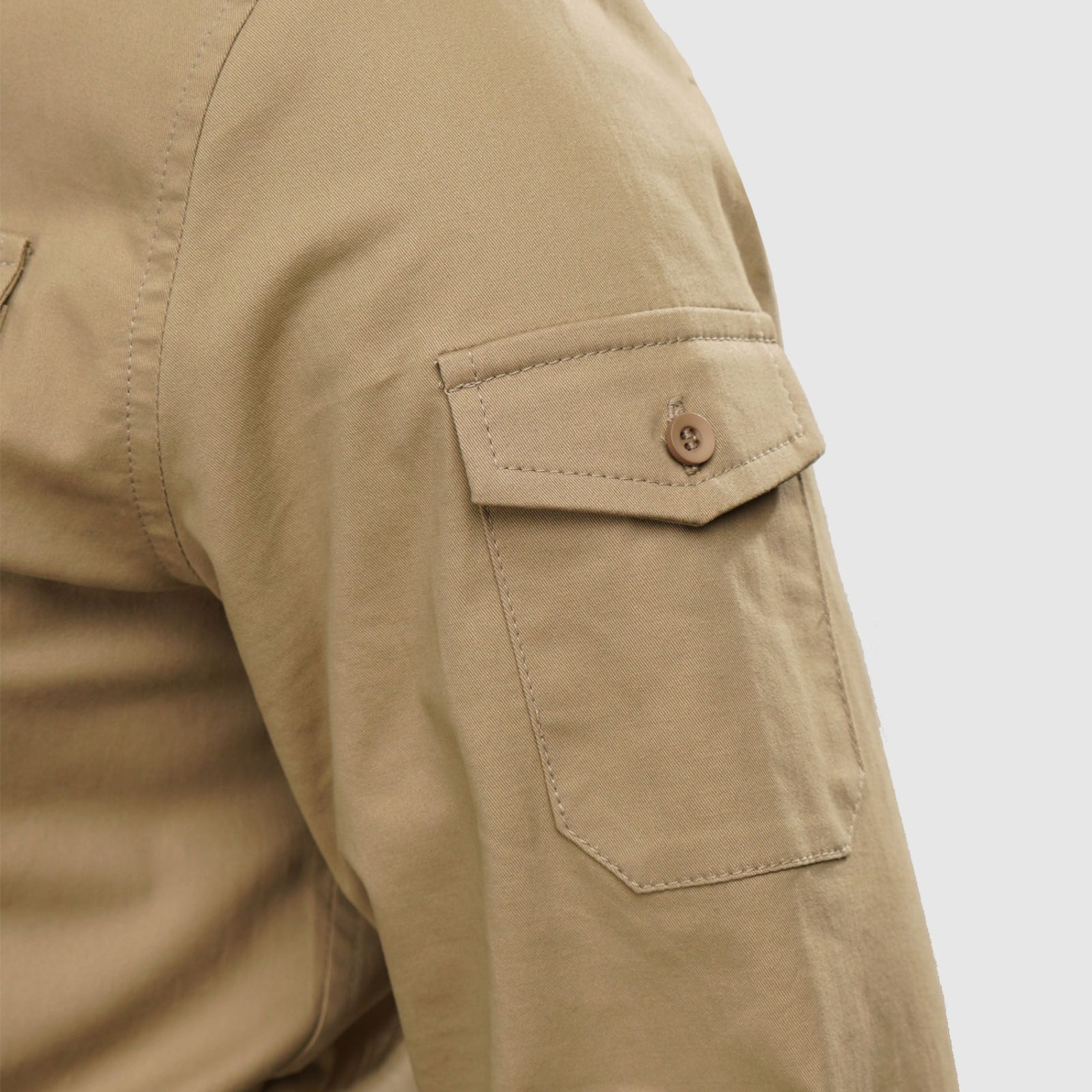 Сорочка UATAC President Line Пісочний - це прекрасний вибір як для повсякденного носіння, так і для святкових подій. Виготовлена з м'якої тканини, яка складається на 98% з бавовни і на 2% з еластану. Ця сорочка поєднує в собі класичний стиль і сучасний вигляд, що ідеально підходить для будь-якої фігури. На грудях розташовані дві кишені, а на передпліччях - дві кишені на блискавках. Манжети на рукавах мають два ґудзики, що дозволяють зручно регулювати об'єм.