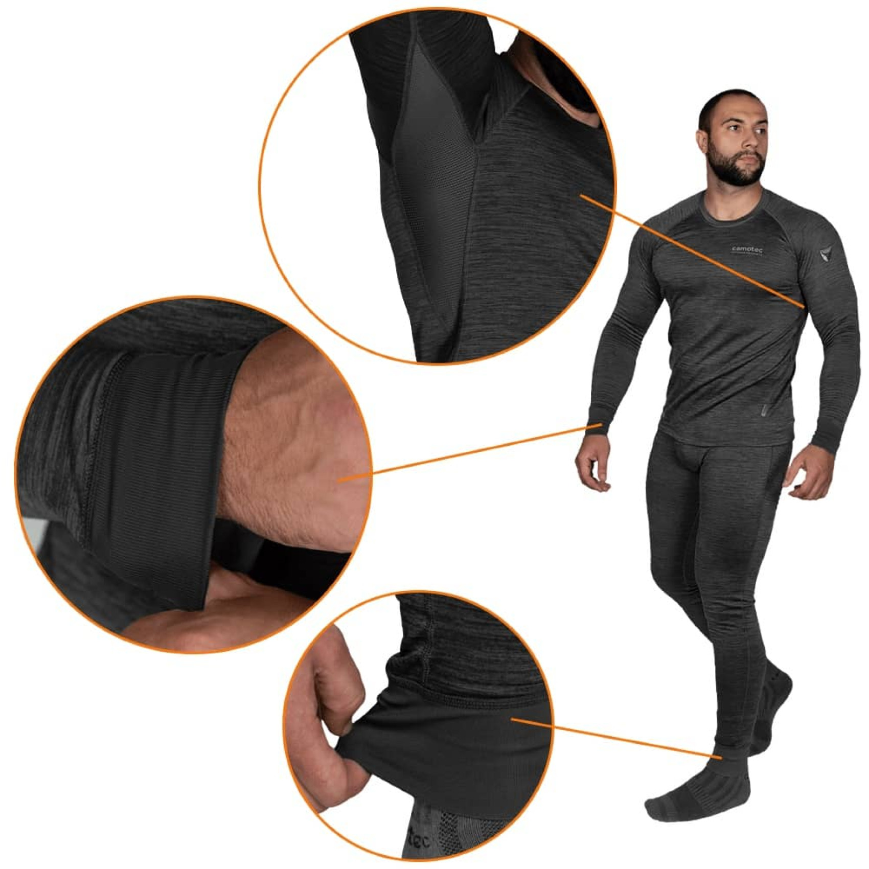 Термобілизна Camotec Polarheat QS Pro 2.0 Сірий Меланж має покращений крій, а також додані еластичні манжети з тканини CoolPass Ribana на рукавах та по низу штанів.