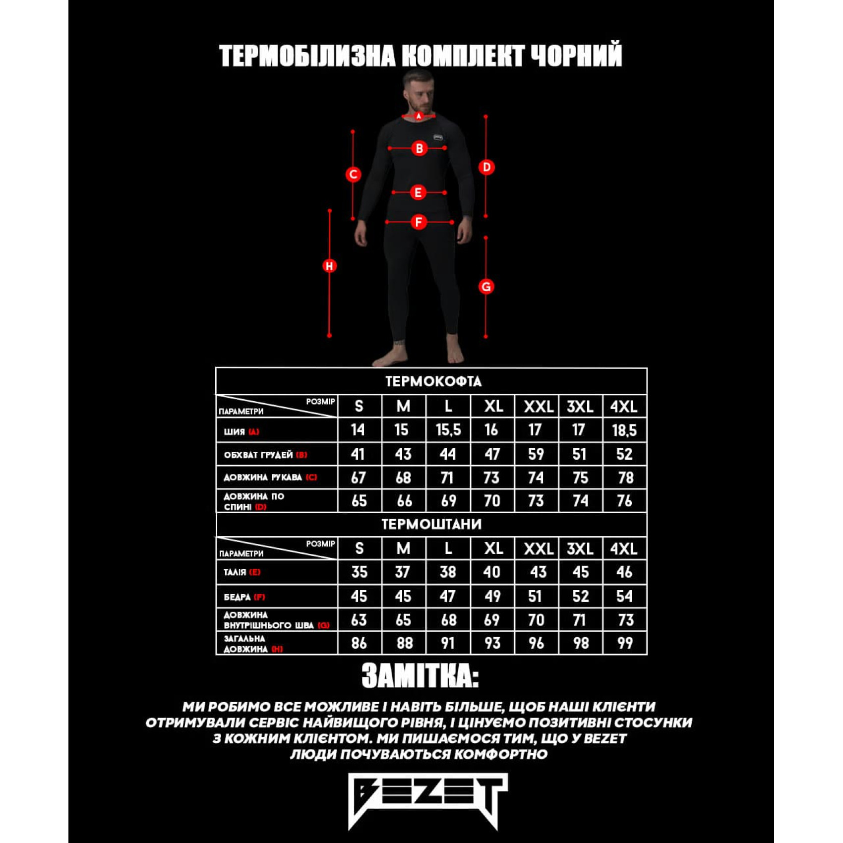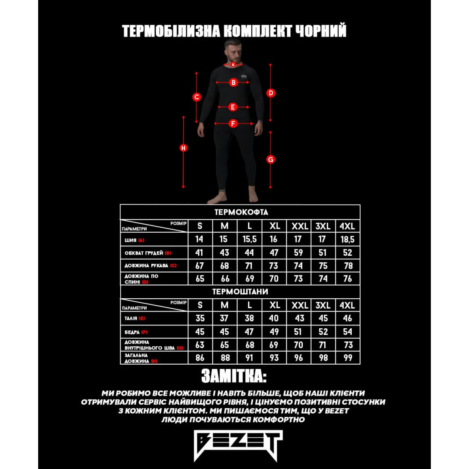 Термобілизна комплект BEZET Чорний виконано з двокомпонетного матеріалу - віскоза вбирає та випаровує вологу швидше за бавовну в 1,5 рази. Поліестер передає всю вологу зі шкіри назовні. Анатомічний крій, що закриває всі точки критичної тепловтрати: область шиї і горла, поперек, стегна і зап'ястя. Максимальна точність елементів за рахунок лазерного розкрою. Плоскі шви сприяють зносостійкості збільшує міцність конструкції, а також виключають натирання та травмування шкіри при носінні. Білизна облягає фігуру, але при цьому не сковує рухи. М'який, приємний для тіла матеріал термобілизни відводить зайву вологу та зберігає тепло, забезпечуючи внутрішній комфорт тілу навіть за високих фізичних навантажень. Анатомічний крій та плоскі, еластичні шви, підвищують міцність виробу та створюють додатковий комфорт. Термобілизна — білизна універсального використання, найкращий вибір для мисливців та туристів у холодну та дуже холодну погоду за будь-якої фізичної активності.