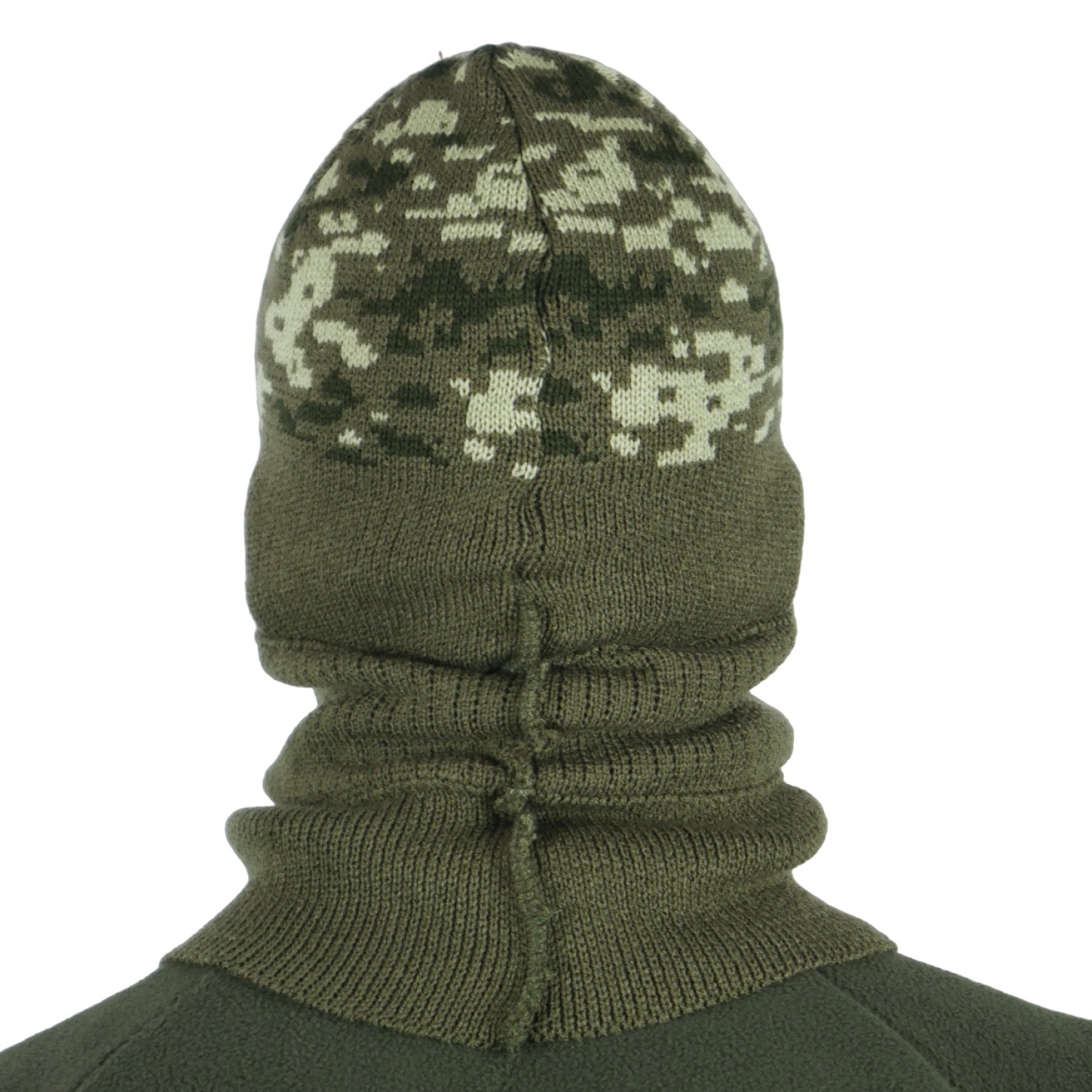 Шапка-балаклава в'язана Kiborg Олива Піксель захистить вашу голову та обличчя від вітру та холоду, може використовуватись як підшоломник, також виконує функцію маскування.