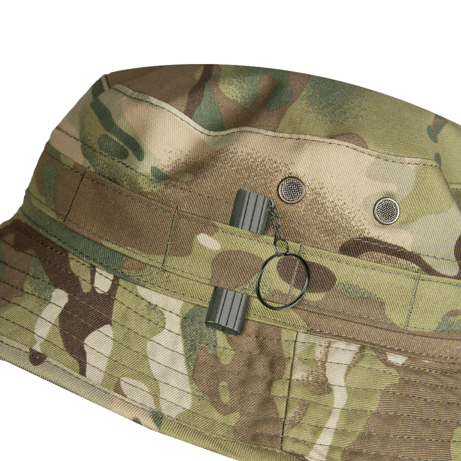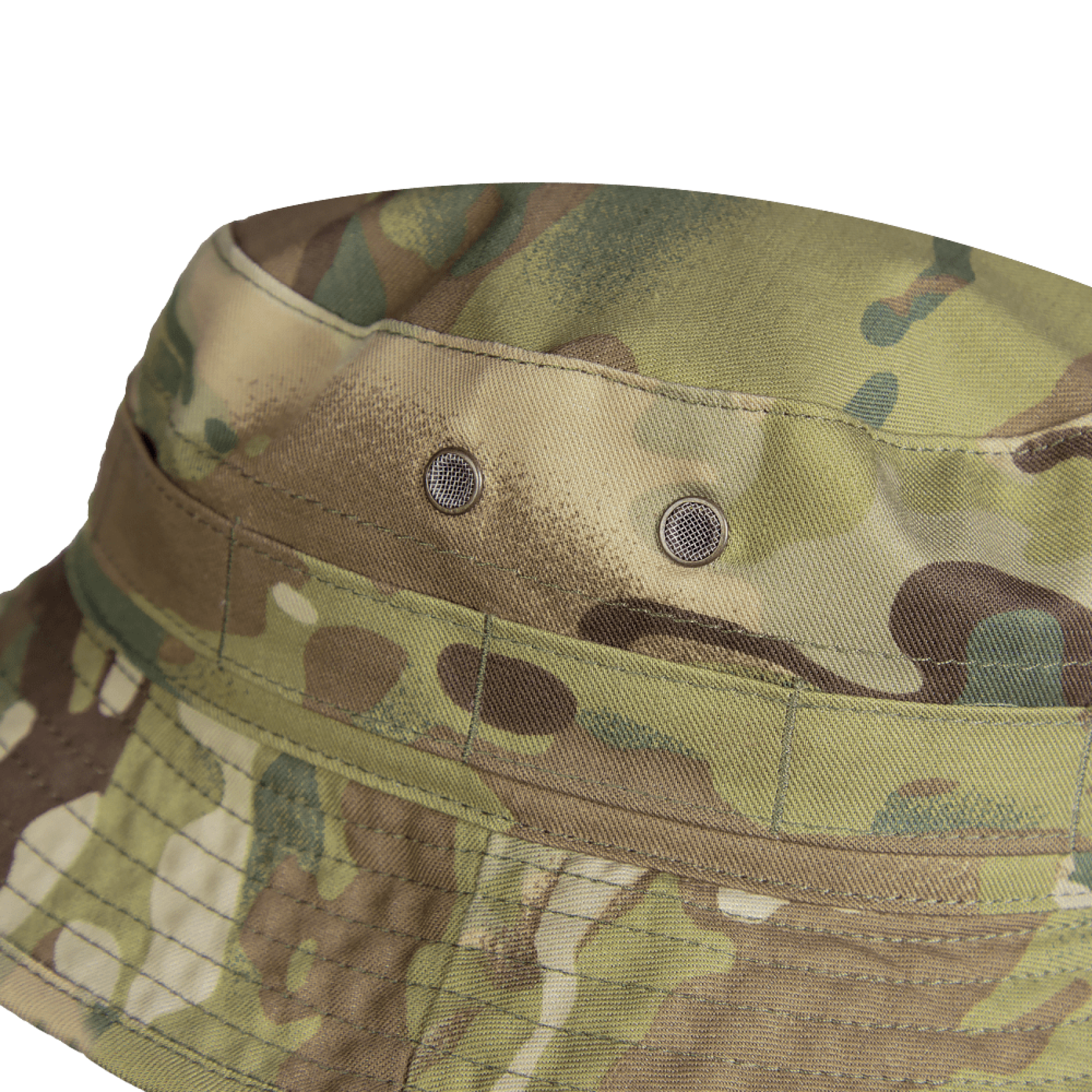 Панама Camotec Boonie 2.0 Twill Мультикам виготовлена з якісних матеріалів, являє собою міцний і практичний аксесуар із системою MOLLE. Підходить як невід'ємний елемент форми в теплу пору року. Панама виконана зі зносостійкого та дихаючого твілу Twill, створеного із суміші поліестеру та бавовни. Цей матеріал забезпечує високу міцність і комфорт під час використання, а також є гіпоалергенним.
