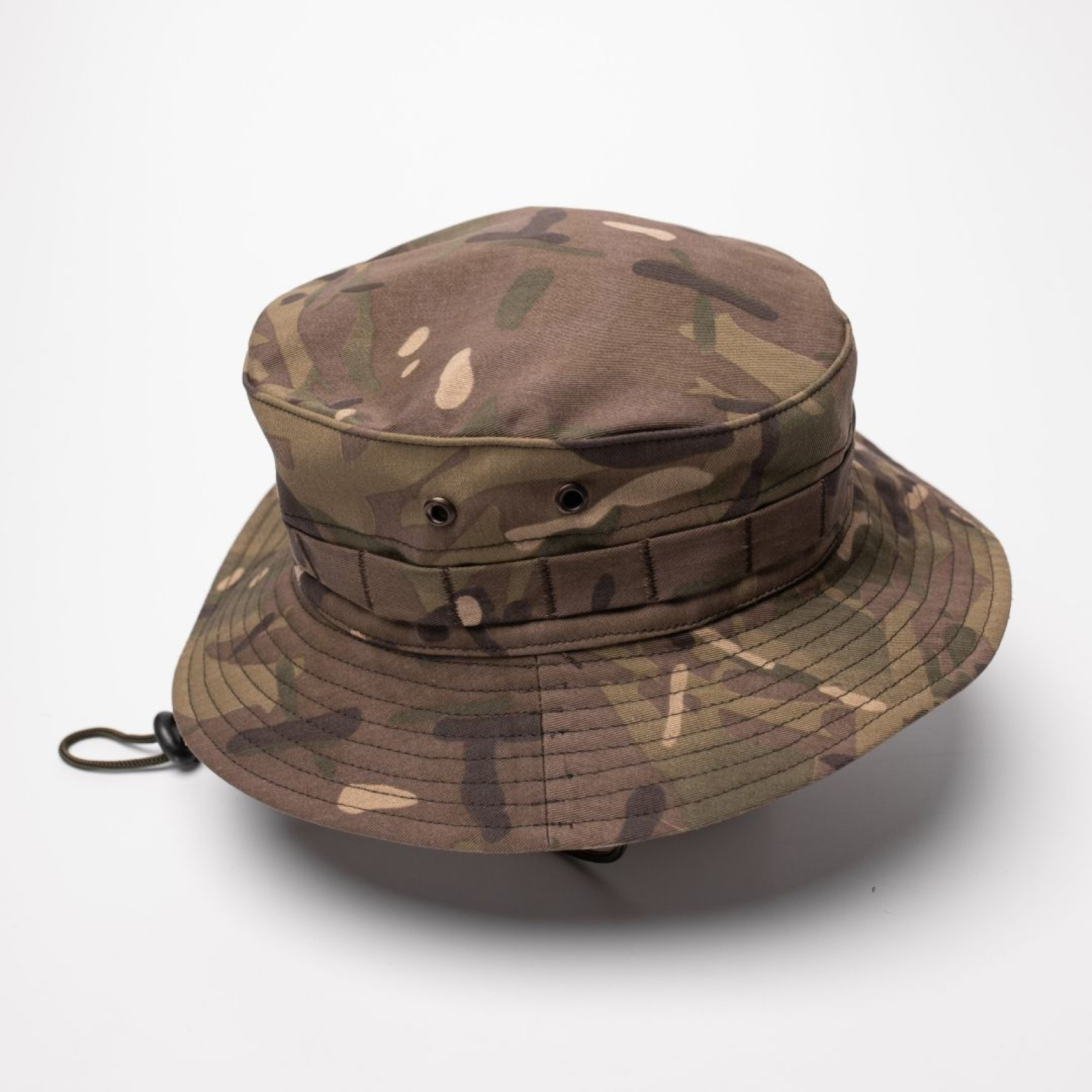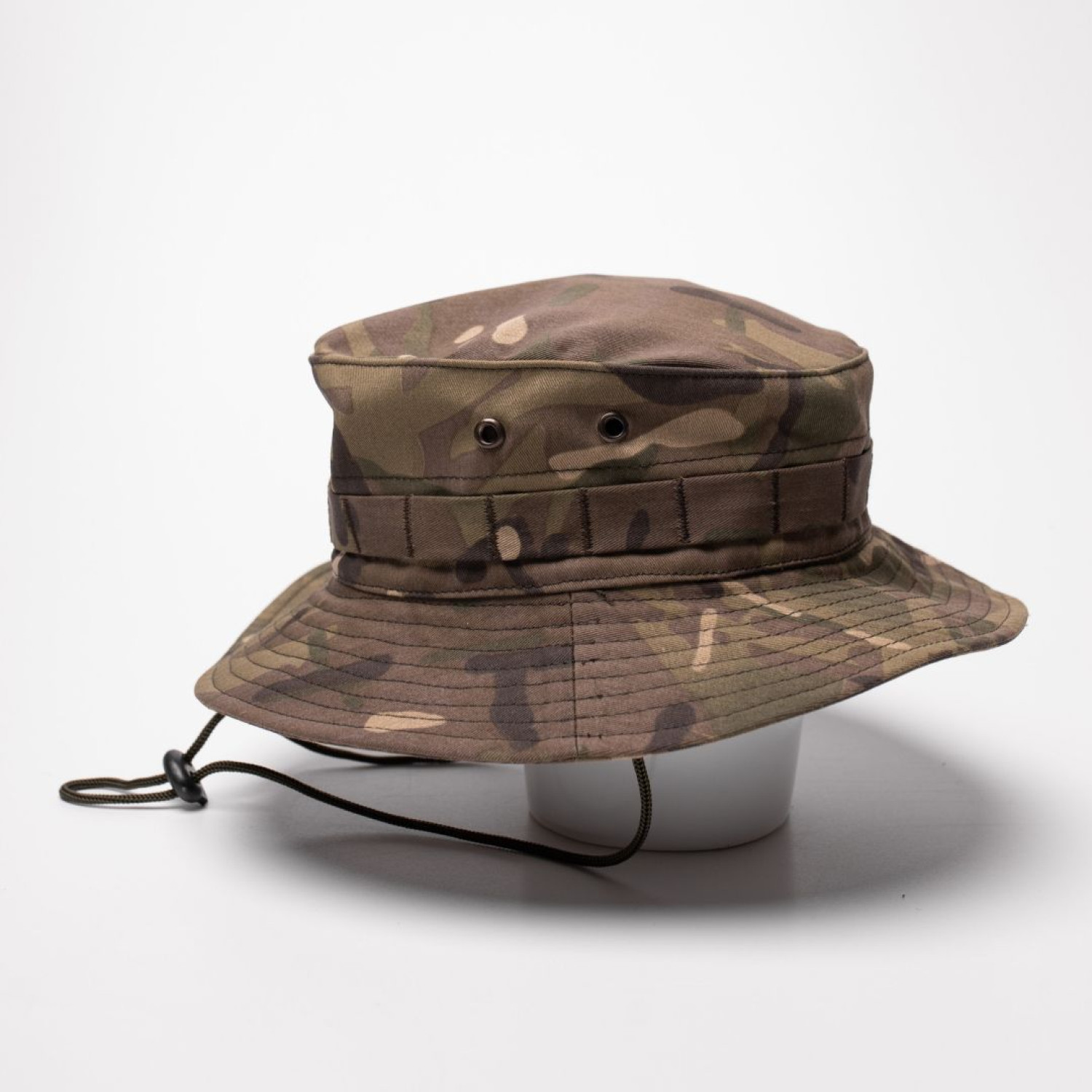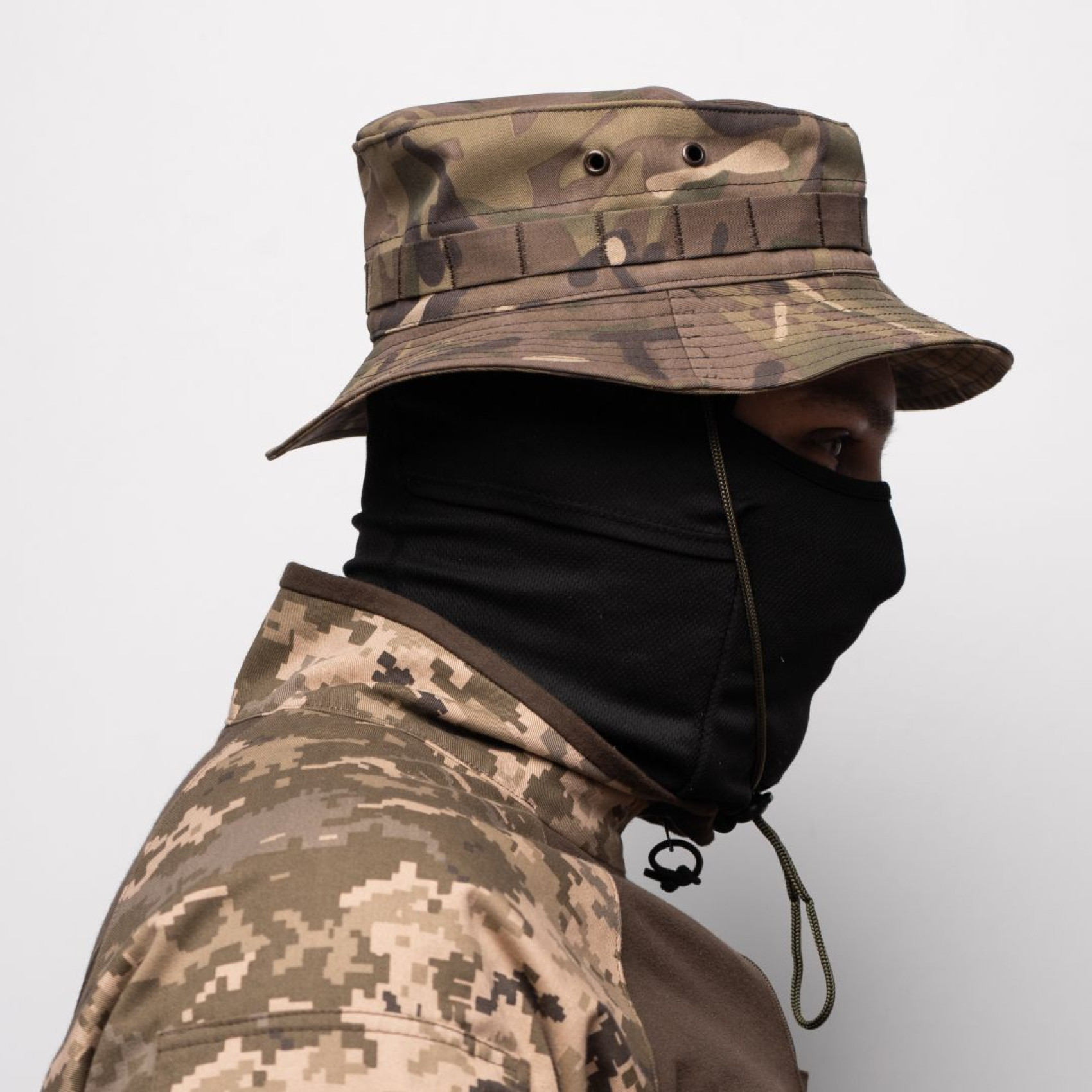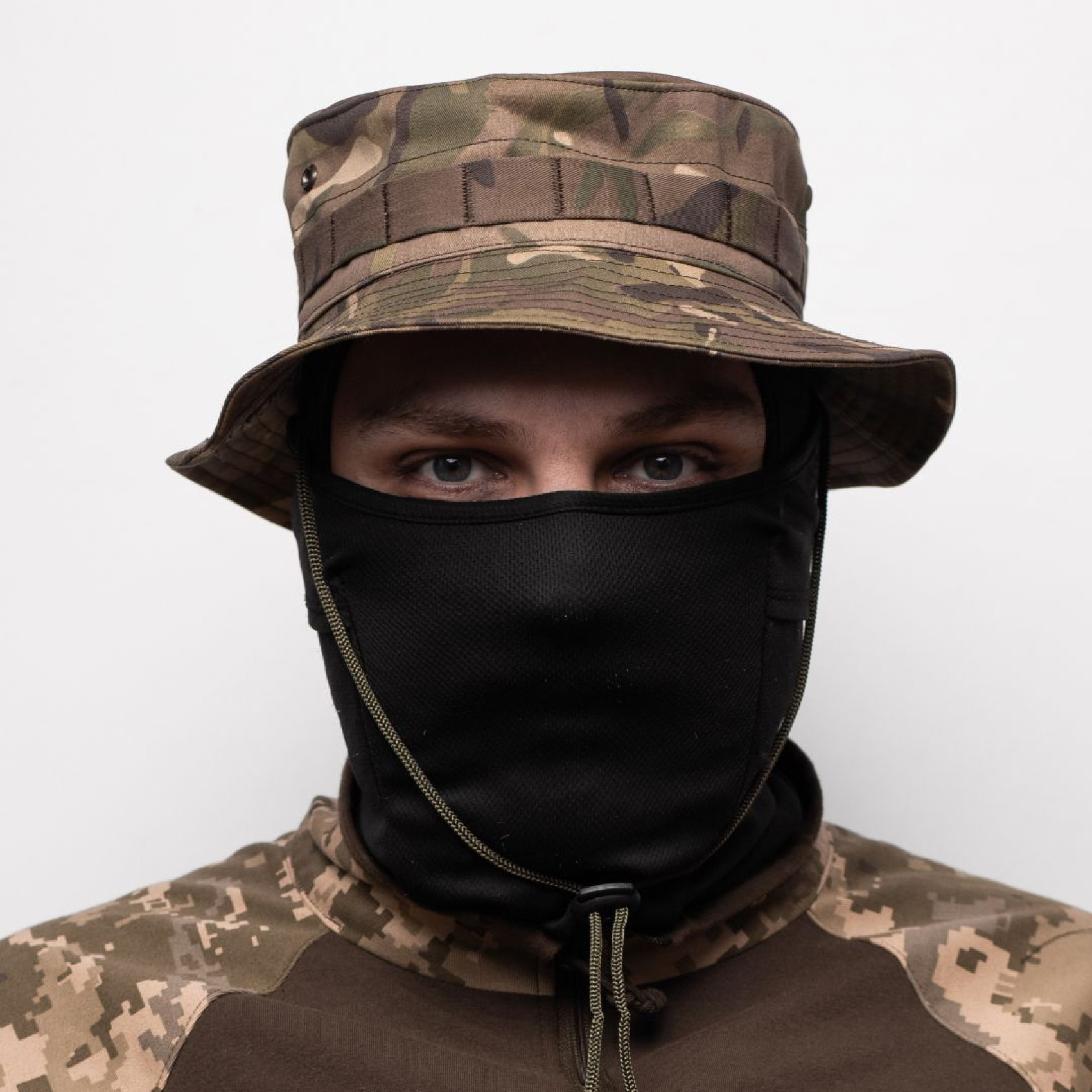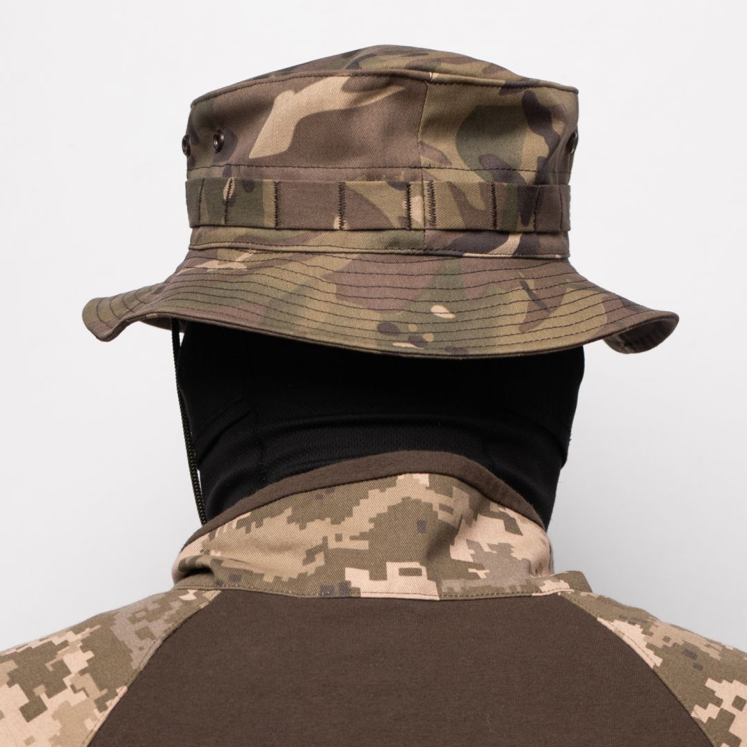 Тактична панама має дизайн із напівжорсткими полями. Навколо тулії пришита стрічка, призначена для кріплення додаткових маскувальних засобів. Панама тактична Defpoint Мультикам оснащена спеціальним шнуром, що запобігає її падінню з голови під час сильних поривів вітру. Крім того, на панамі розташовані чотири люверси, що забезпечують чудову вентиляцію.