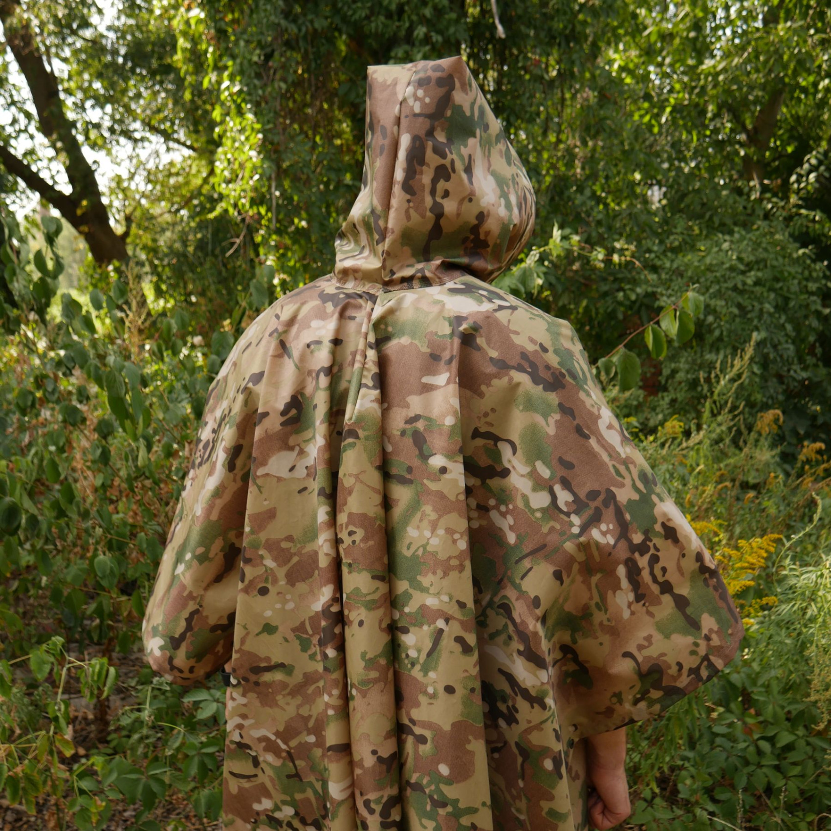 Пончо ідеально підходить для військових цілей завдяки своєму забарвленню мультикам.