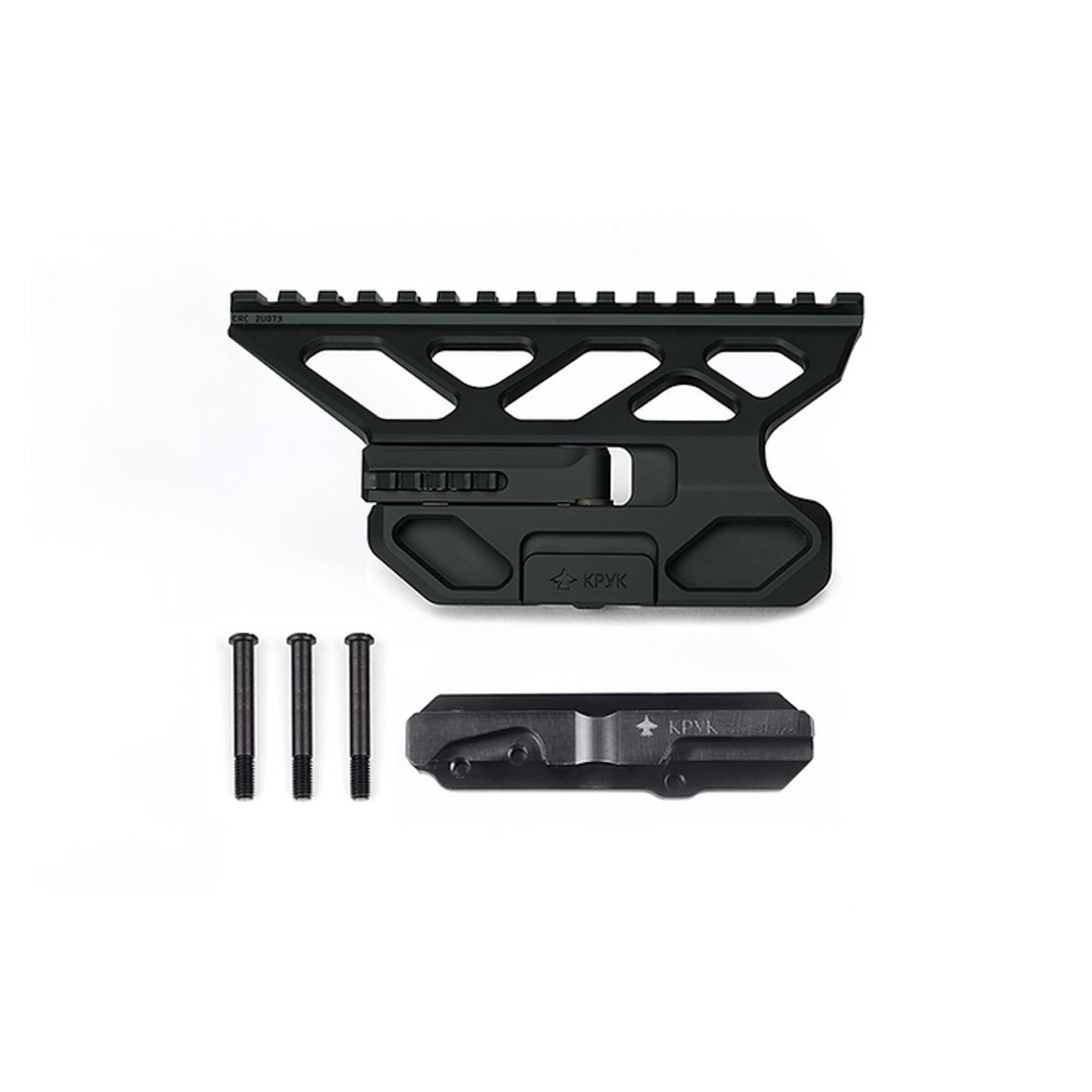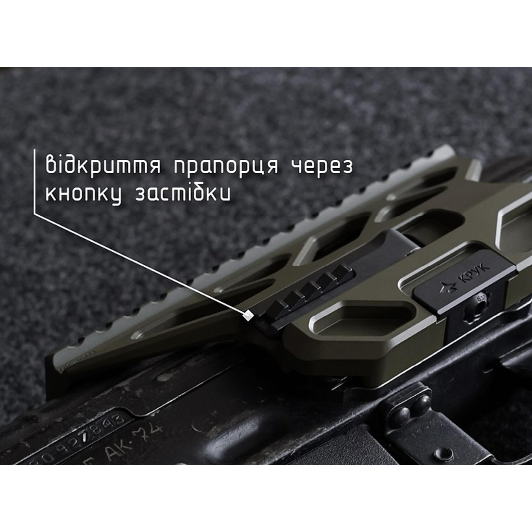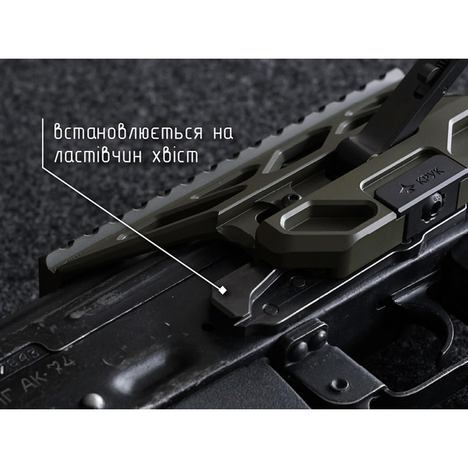 Кронштейн бічний швидкозʼємний Крук з планкою пікатіні та кріпленням – це комплект кріплення ластівчин хвіст для АК разом зі швидкозʼємним бічним кронштейном CRC 9U028 + 2U073.