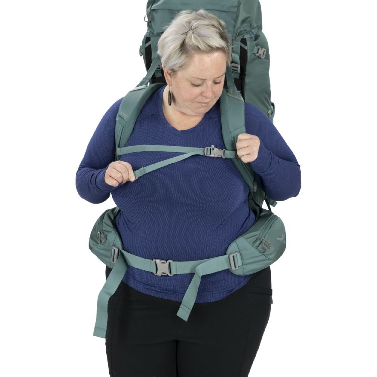Рюкзак Osprey Viva 65 Блакитний стане ідеальним супутником для багатоденних і тижневих подорожей, забезпечуючи максимальний комфорт. Вузький крій моделі створений з урахуванням жіночої анатомії, а задня панель AirScape™ з регульованою системою налаштування тулуба гарантує оптимальний розподіл навантаження. Легка сітчаста 3D-піна на задній панелі щільно прилягає до тіла, забезпечуючи стабільність, амортизацію і чудову вентиляцію, що робить транспортування спорядження ще зручнішим.